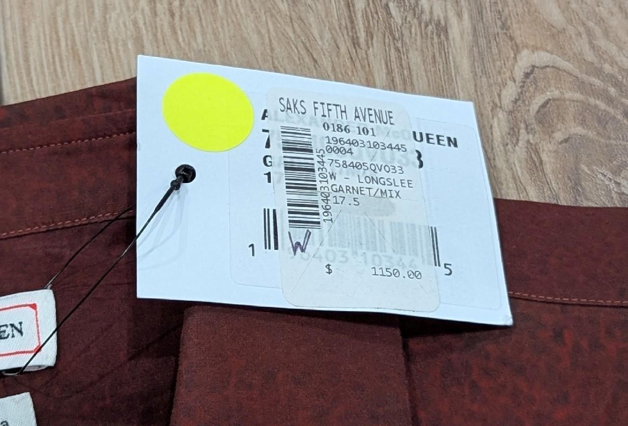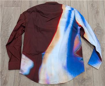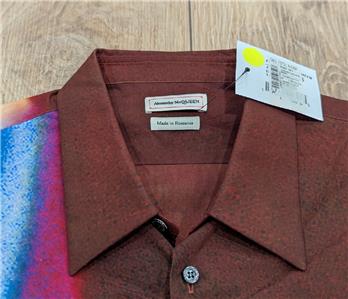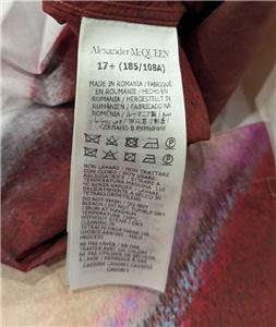 $1150 Mens Alexander McQueen Graphic Cotton LS Button Up Shirt Garnet 17.5