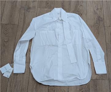 Valentino updates this button-down with a studded collar, patch pockets, and a scarf-like trim.