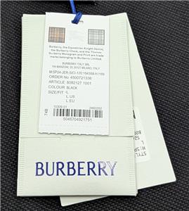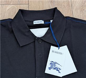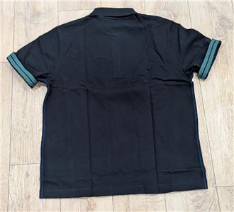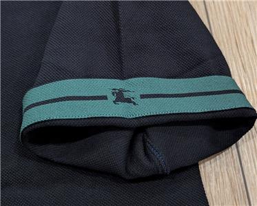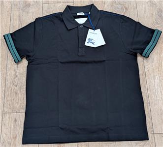$660 Mens BURBERRY Contrast Cuff Pique Polo Shirt Black/Green Large