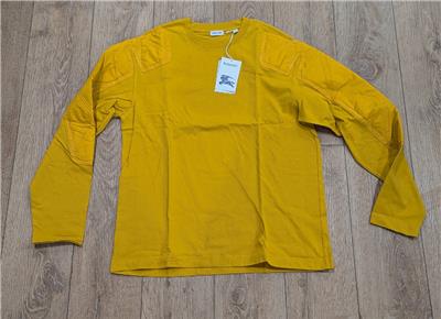 Burberry Panelled Fine-Knit Jumper. This jumper features quilted panels, an embroidered Equestrian Knight logo on the back, long sleeves, and a rib-knit neckline. 100% Cotton. Made in Portugal.