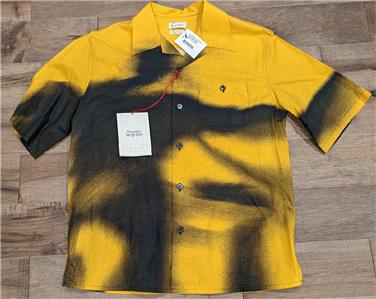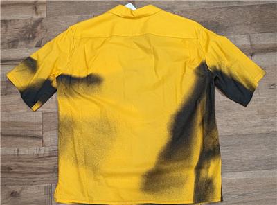 $990 Mens Alexander McQueen Spray Paint Button Up Camp Shirt Gold/Black 16