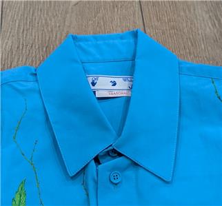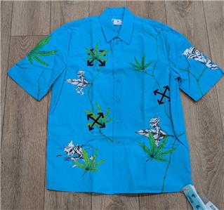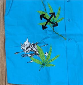 $990 Mens OFF-WHITE Leaf Print SS Button Up Shirt Teal Medium