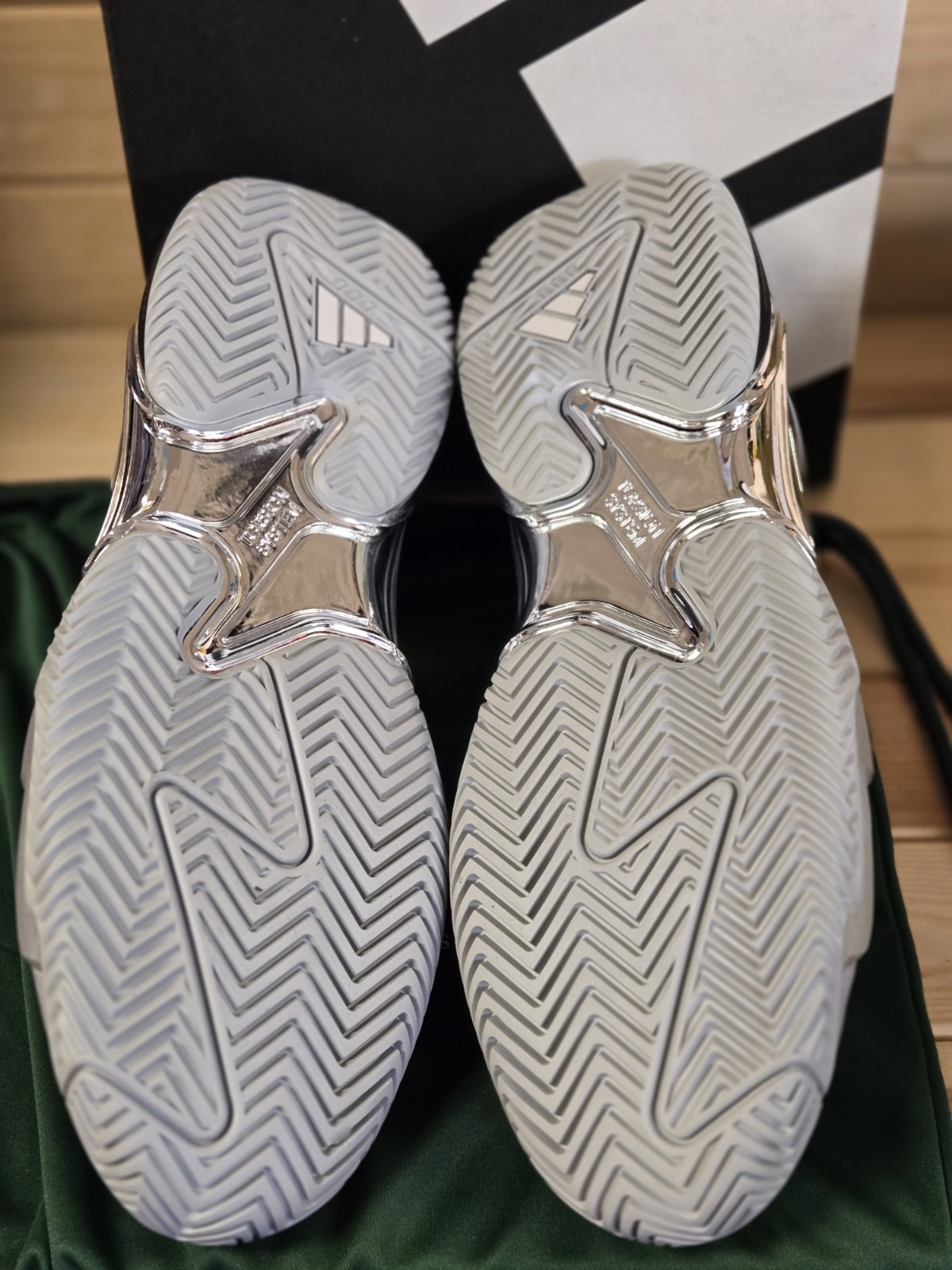 The adidas Barricade 13 25TH Edition Tennis Men's Sports Training JP5379 in size 11.5 is a stylish and high-performance athletic shoe designed for tennis players. Featuring a low top design with a lace-up closure, this shoe offers a comfortable fit for active wear. The silver metallic and dash grey colorway adds a sporty touch, while the polyester lining and synthetic rubber outsole provide durability and traction on the court. With cushioned features and standard shoe width, this model is perfect for players seeking both style and functionality in their footwear.