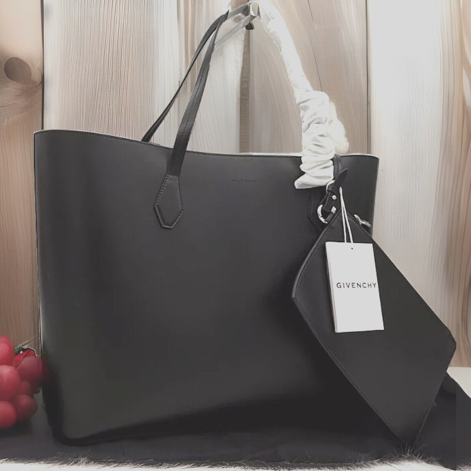 AUTH NWT Givenchy Wing Logo Black Calf Leather Large Tote Shopper W/Zip Pouch