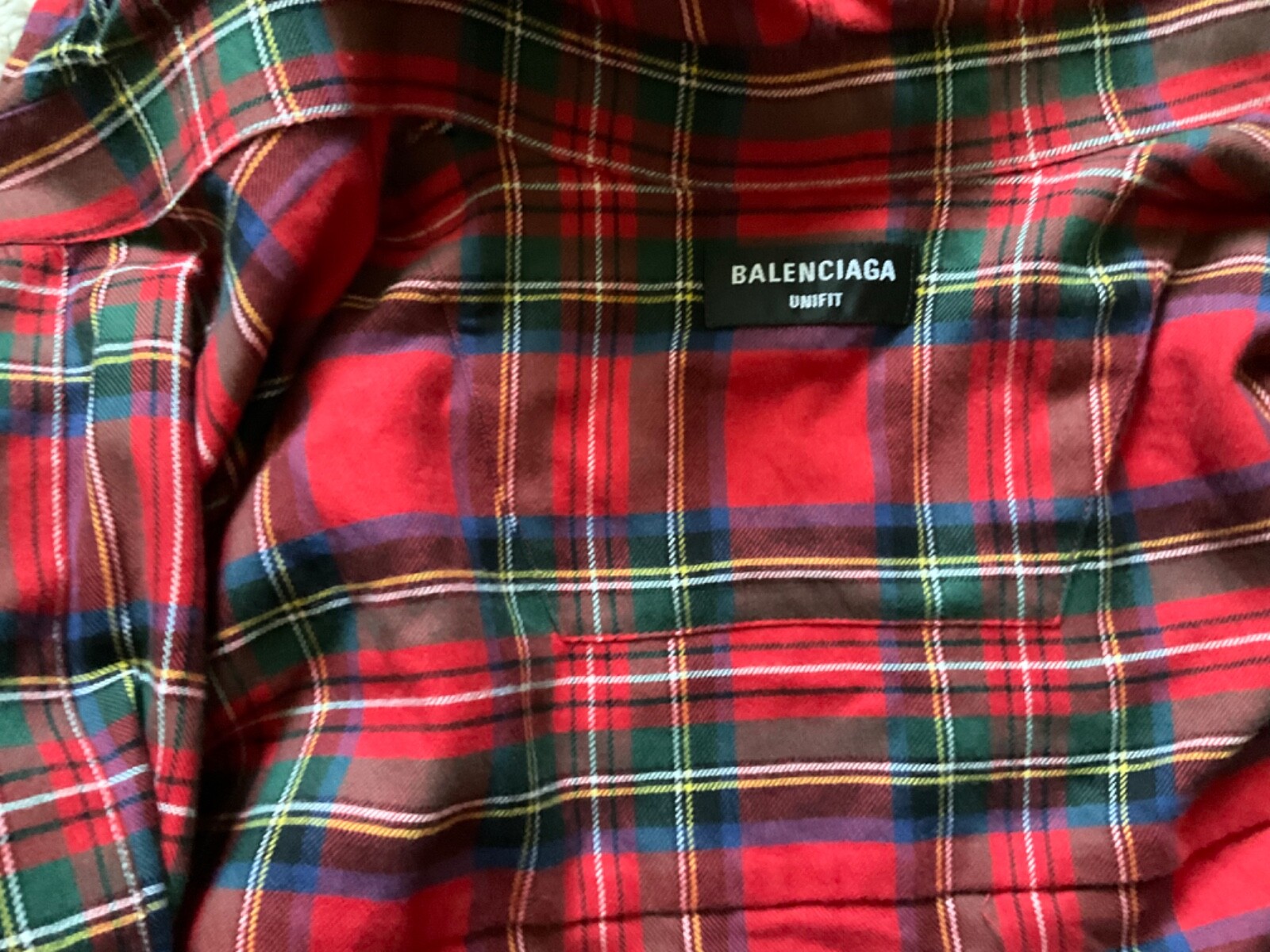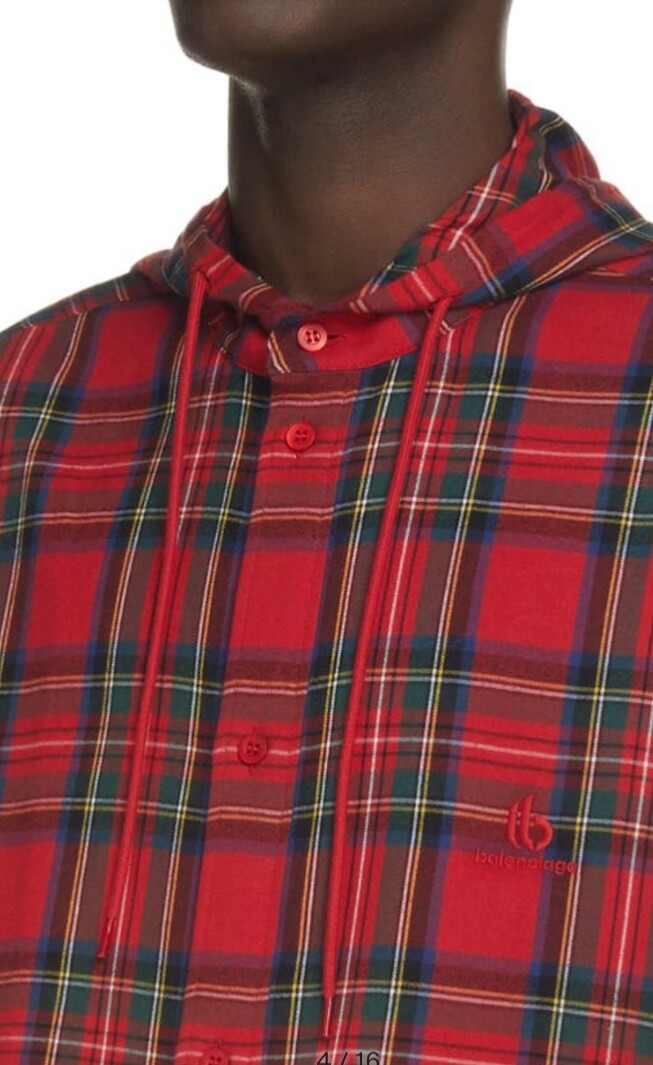 BALENCIAGA HOODED FLANNEL CHECK BUTTON DOWN UNIFIT SHIRT. SIZE S. RED.