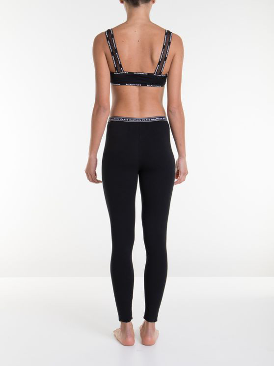 Drilled activewear top featuring branded trims.