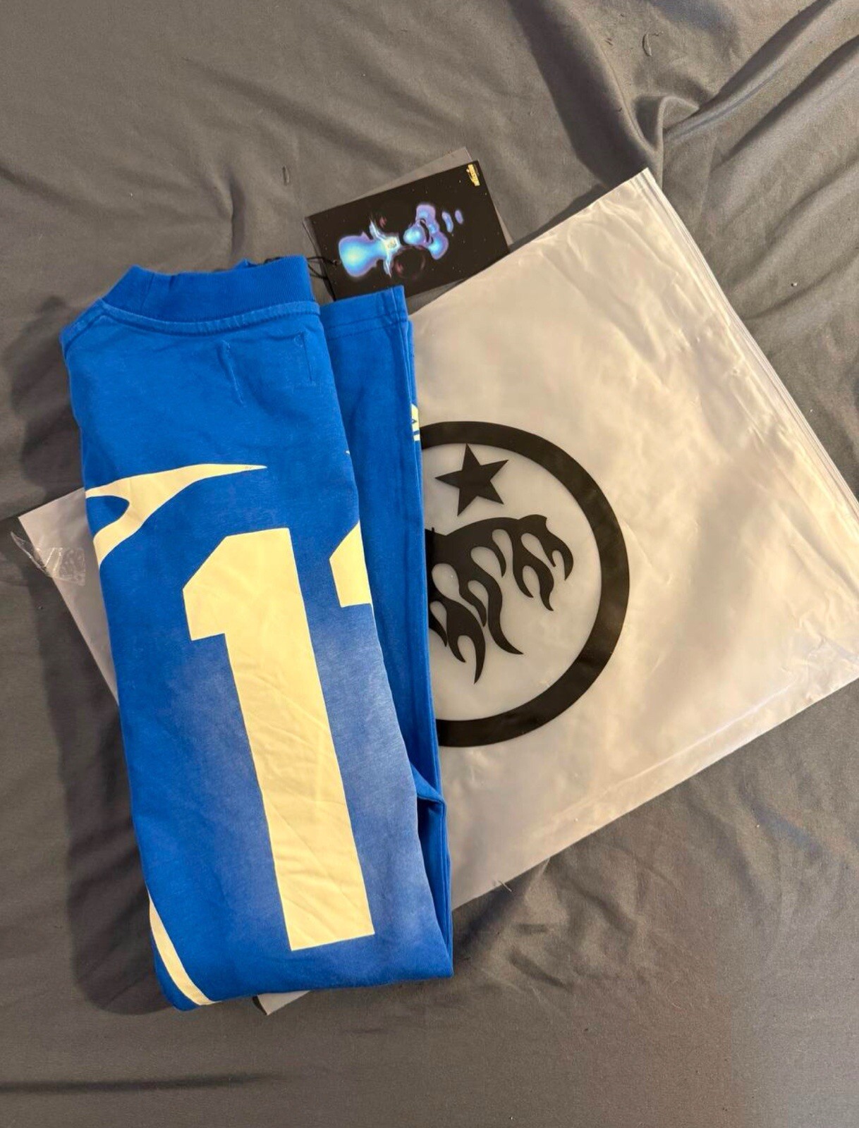Blue Hellstar Warm Up T-Shirt – A bold, graphic tee featuring the signature Hellstar logo in vibrant blue. Crafted from premium materials, this shirt offers a comfortable, athletic fit with an eye-catching design that adds a touch of streetwear flair to any outfit.
