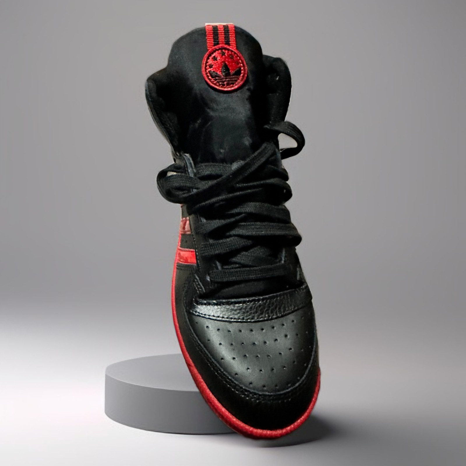Elevate your athletic game with these customized Adidas sneakers, perfect for any sports occasion. The lace-up closure and mid-top shoe shaft style provide a comfortable fit, while the rubber outsole and cleat type ensure durability and traction. Made with a leather upper and lining material, these shoes are built to last and provide the perfect finishing touch to your activewear, casual, or workwear outfit. With a solid pattern and red and black color scheme, these shoes have a timeless look that will never go out of style. Whether you're playing tennis, boxing, or going for a run, these shoes are the perfect choice. Get your hands on these Adidas Athletic sneakers today and take your sports game to the next level.