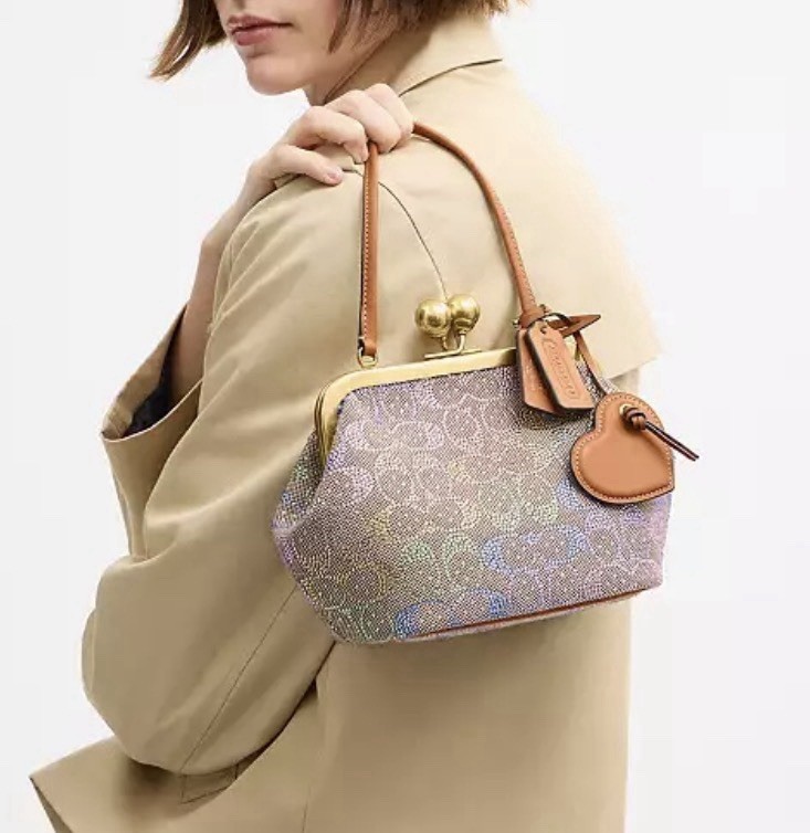 COACH KISSLOCK FRAME BAG 16in IN CRYSTAL SIGNATURE JACQUARD CDC36 NEW/ NWT & ON HAND WITH GIFT BOX