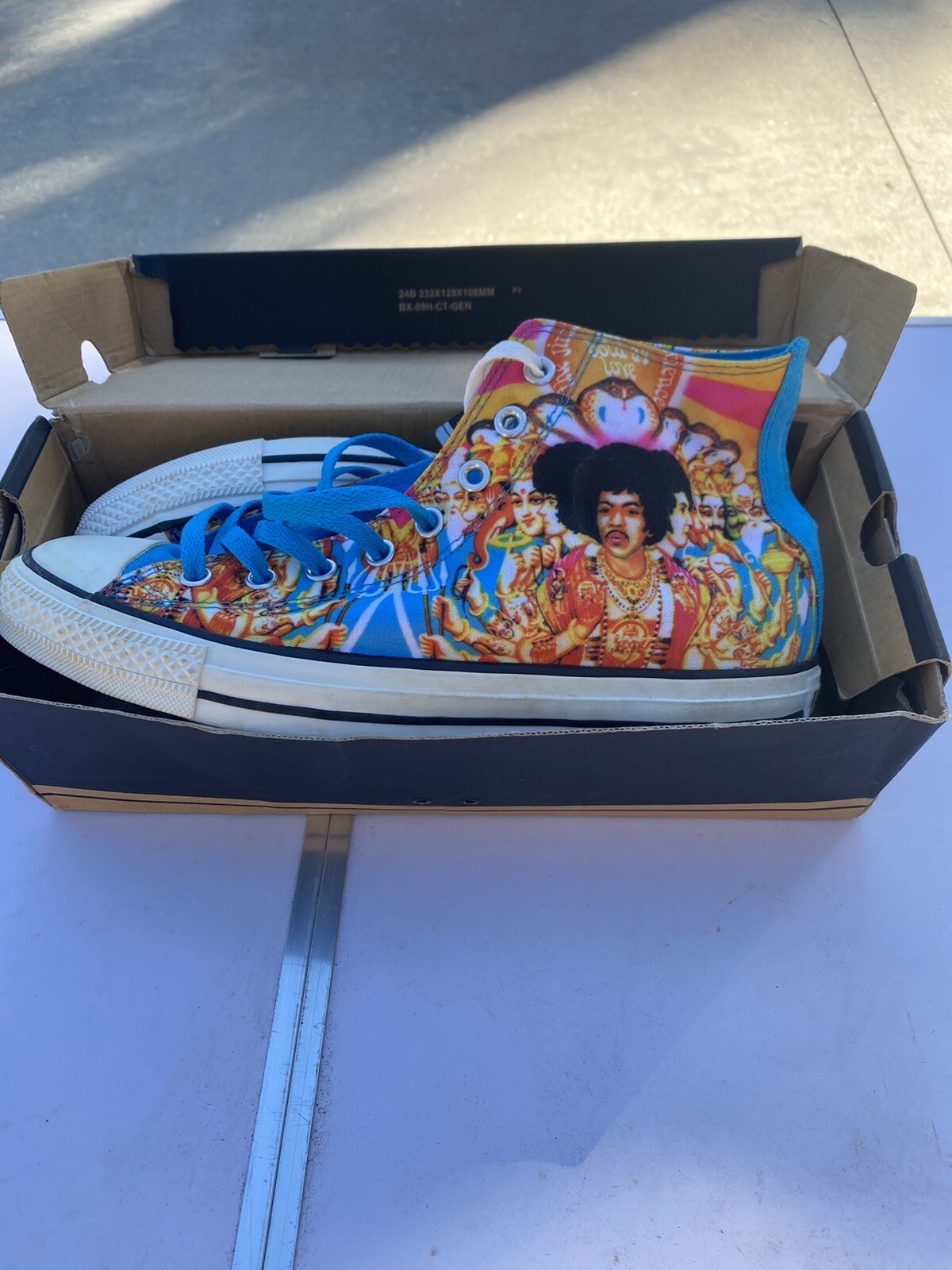 Made by Converse, these shoes are of the highest quality and are sure to turn heads. The style code for these sneakers is 151194C, and they belong to the Converse Chuck Taylor All Star product line. Whether you're a collector or just looking for a unique pair of sneakers, these Converse Chuck Taylor All Star Jimi Hendrix sneakers are a must-have.