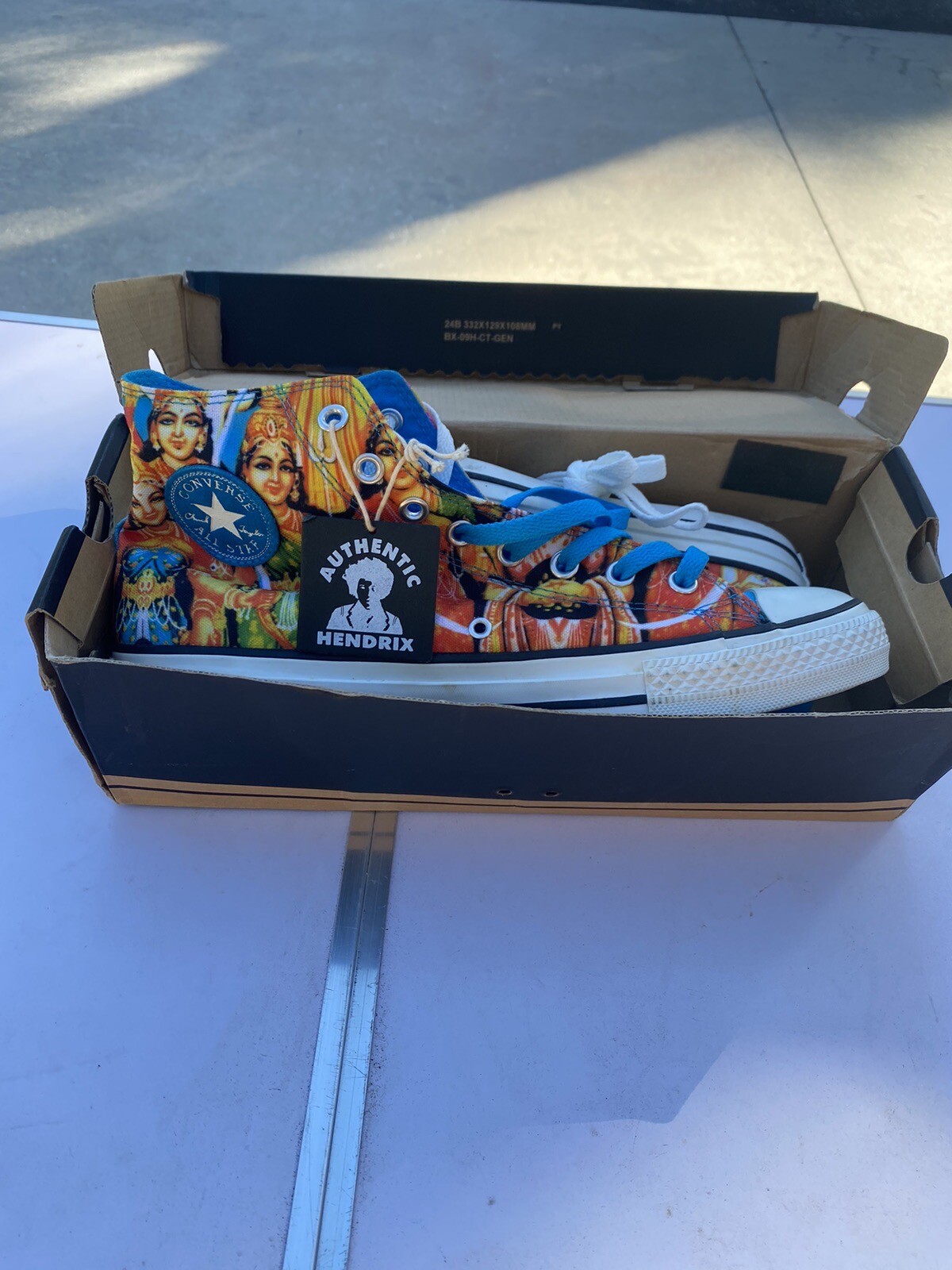 Get ready to rock out with these Converse Chuck Taylor All Star Jimi Hendrix sneakers. These high top sneakers feature a multicolor star-themed design with the iconic Jimi Hendrix logo on the side. With a size 10 US shoe size, these sneakers are perfect for any male fan looking to add some style to their wardrobe.