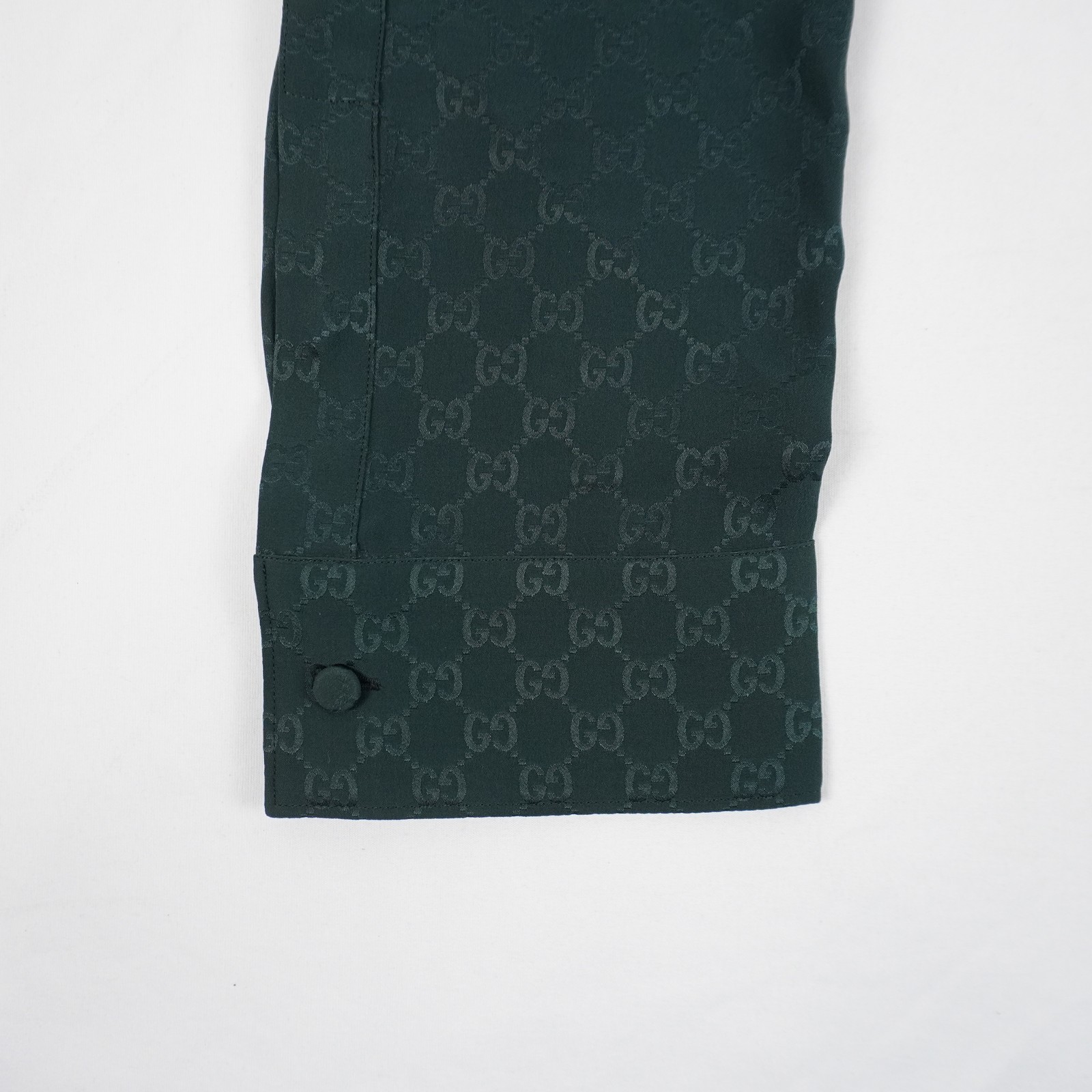 Gucci GG Silk Jacquard Long-Sleeve Dress Shirt In Dark Green - Men's Size EU 56
