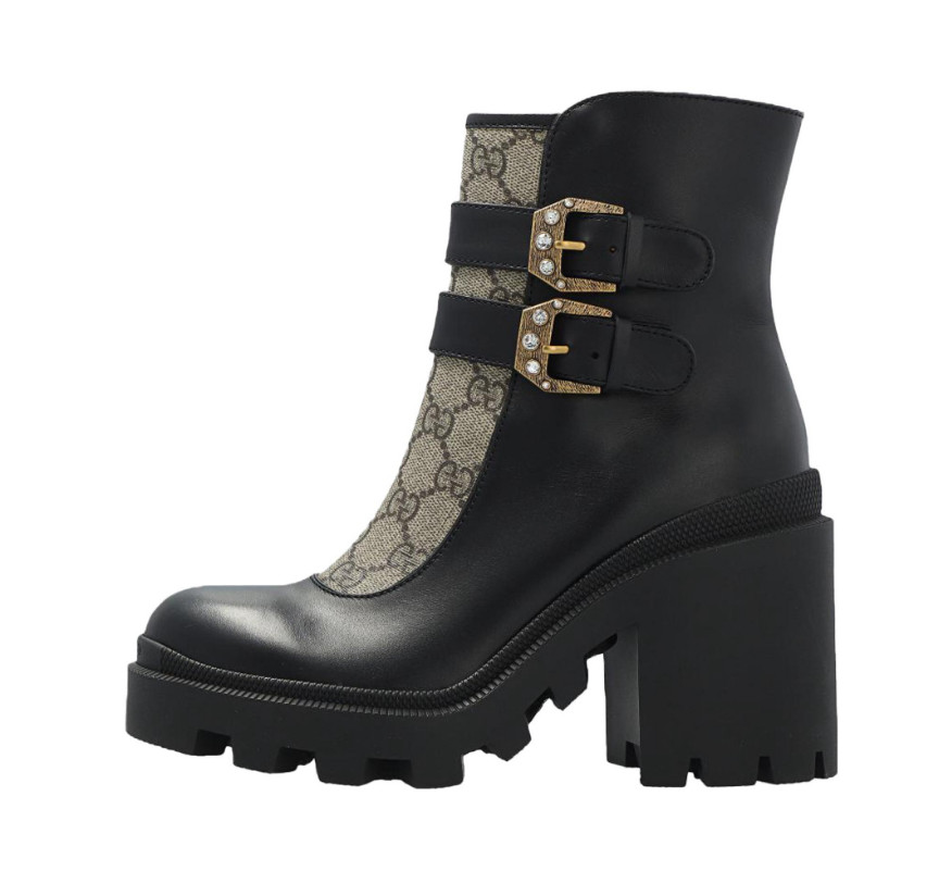 Gucci GG Supreme Leather Ankle Boots 7cm Womens Black 701100 UVV20 1182