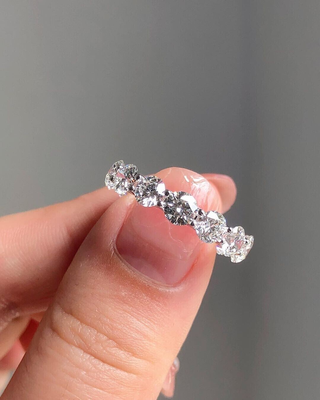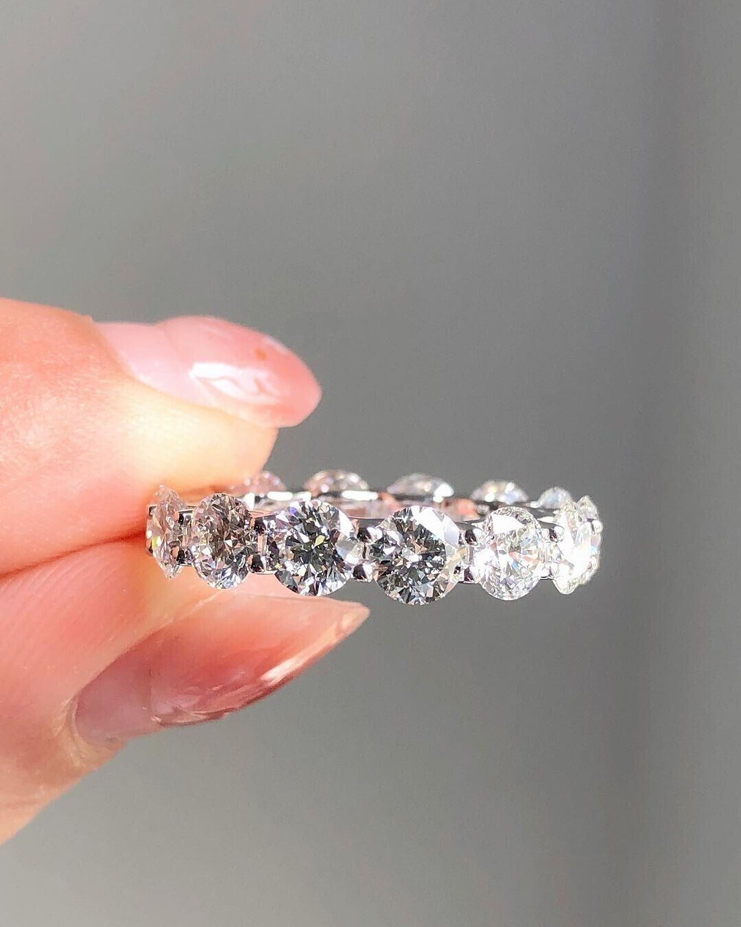 This Halloween Accessories Round Cut Lab Grown/CVD Diamond Band Ring in 14K White Gold is a beautifully crafted piece of fine jewelry perfect for special occasions like Mother's Day, weddings, anniversaries, birthdays, and Valentine's Day. The ring features a round white diamond as the main stone with a band and eternity style design. It is handmade with nickel-free materials, authenticated by GIA, and has a total carat weight of 2.00 - 3.00 TCW. The ring is personalized and can be customized in all sizes, making it a unique and timeless piece for any jewelry lover.