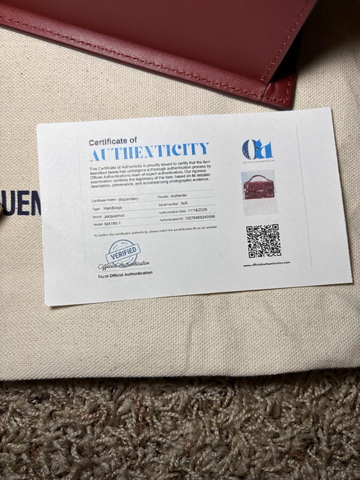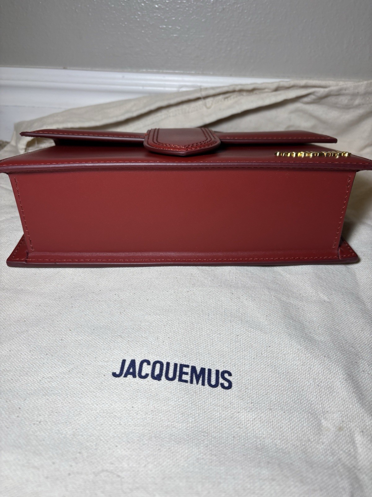 The Jacquemus Le Grand Bambino Sachel Bag in Dark Burgundy is a stylish and high-quality handbag designed for women. With a solid rectangular shape and a magnetic closure, this bag features a top handle made of gold-plated hardware. The luxurious exterior is made of leather in a rich burgundy color, adding a touch of elegance to any outfit. This designer crossbody bag by Jacquemus is a perfect blend of fashion and functionality, making it a must-have accessory for any fashion-forward woman.