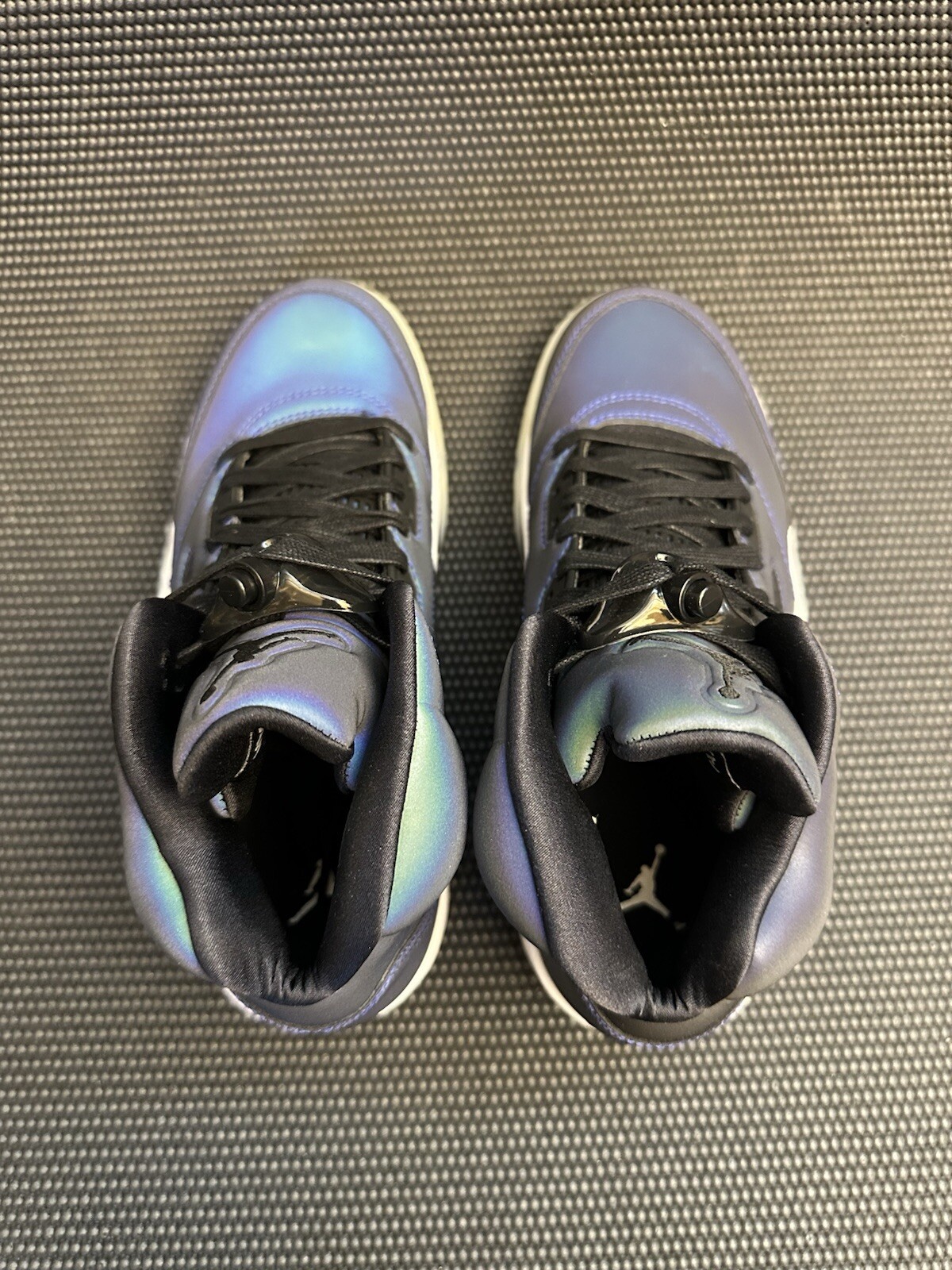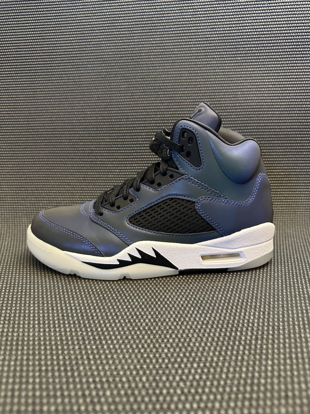 Elevate your game with the Jordan 5 Retro Oil Grey/Black/White sneakers, a perfect blend of style and performance for basketball enthusiasts. The size 7.5 shoes feature a sleek lace-up closure, ensuring a snug fit for any activity on the court or off.