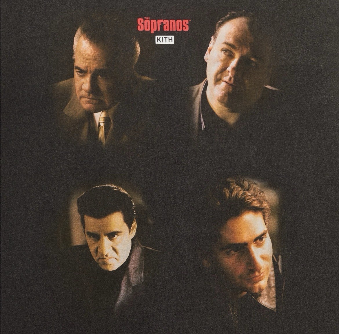 The Kith for The Sopranos Characters Vignette Vintage Black Tee in men's size medium is a classic and stylish t-shirt featuring a regular fit and short sleeves. Its black color adds a versatile touch to any outfit, making it a perfect choice for fans of the iconic TV show. The design of this tee reflects a nostalgic and vintage aesthetic, perfect for those looking to add a touch of retro charm to their wardrobe.