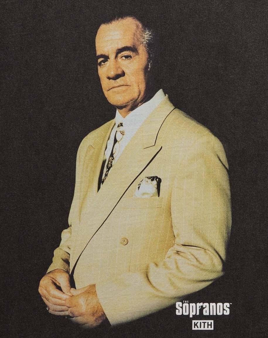 The Kith for The Sopranos Paulie Vignette Vintage Black Tee is a men's short sleeve t-shirt in size medium. It features a classic black color with a regular fit and is perfect for fans of the popular TV show The Sopranos. This limited edition collaboration with Kith adds a stylish and unique touch to your wardrobe, making it a must-have for any collector or fan of the show.