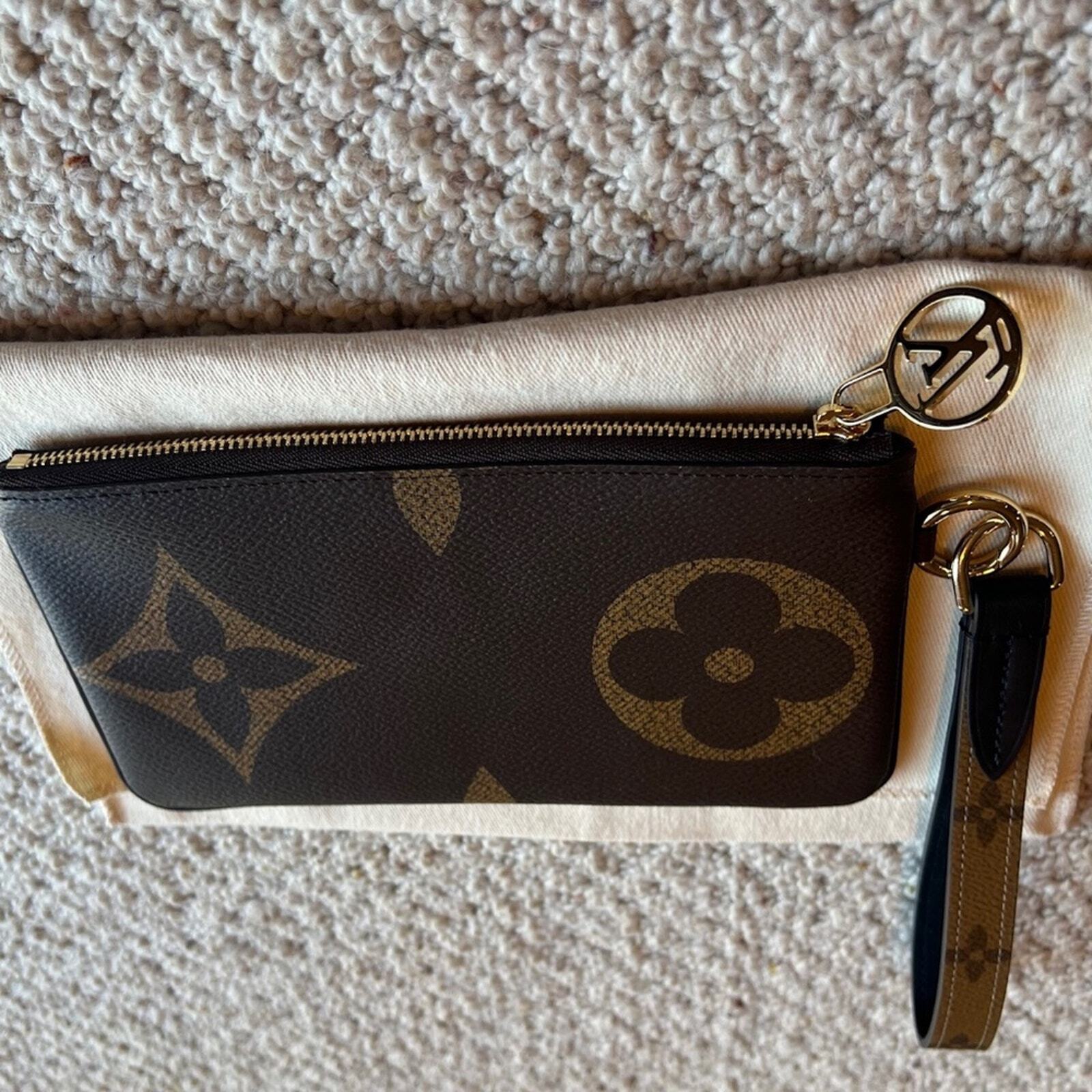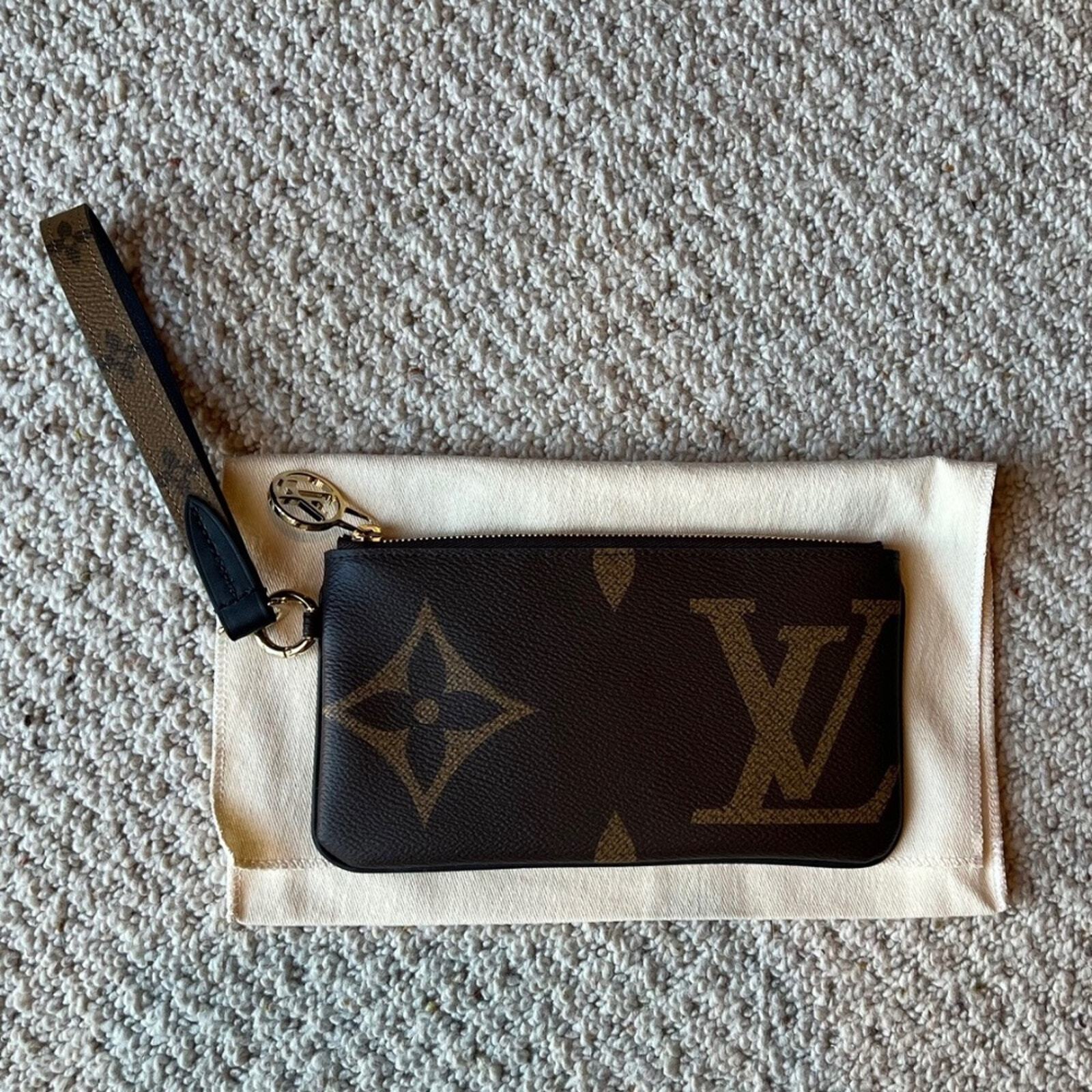 Louis Vuitton Large Rectangle Wrist Pouch w/ LV wristlet strap Monogram Giant