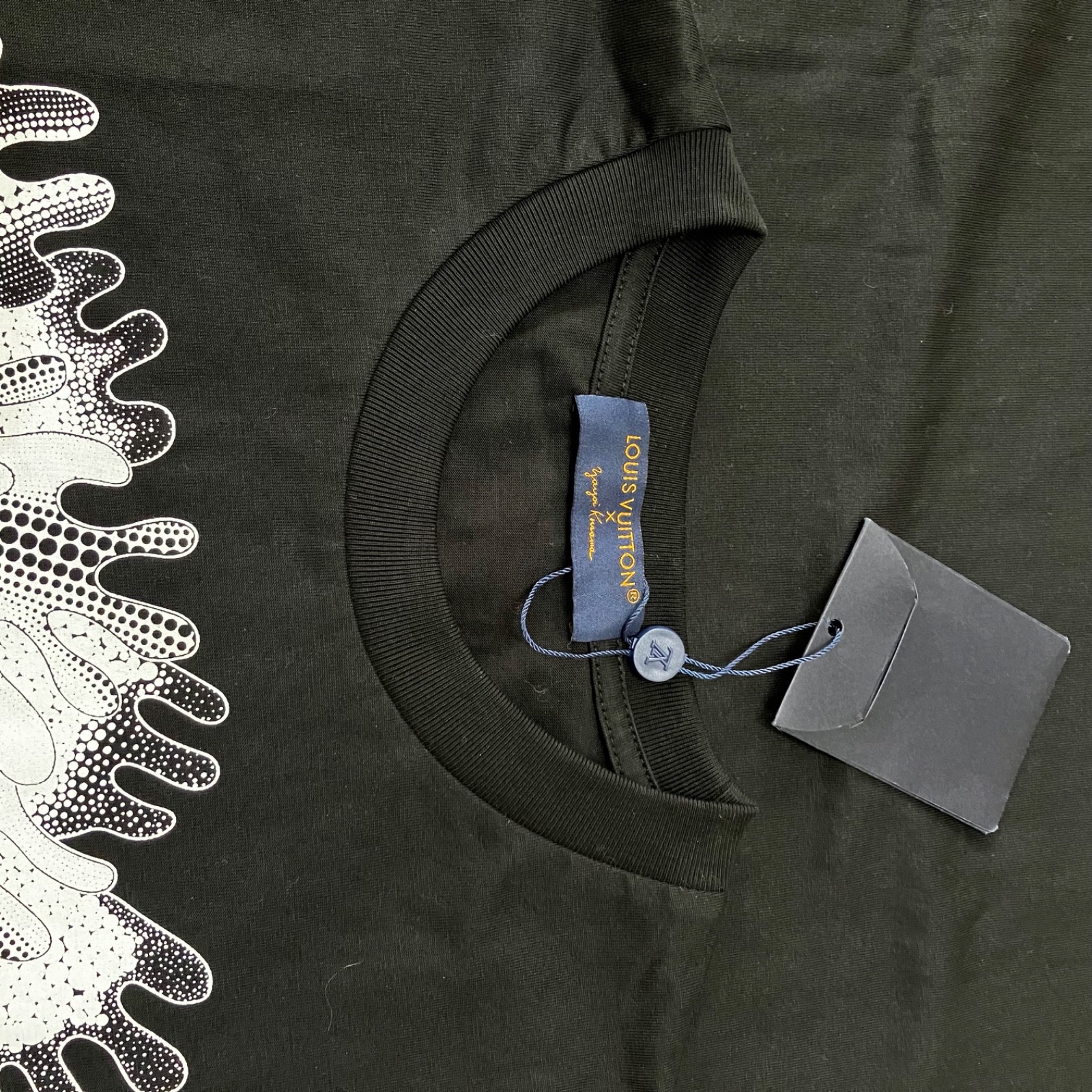 The Louis Vuitton x Yayoi Kusama Unisex T-Shirt in size M is a stylish and high-quality garment made in Italy. Featuring a floral pattern in black and white, this short sleeve shirt with a crew neckline is crafted from soft cotton fabric. Perfect for regular fit, this 2020-2029 manufactured t-shirt is a must-have for men or women looking to add a touch of luxury to their wardrobe. Dry clean only to maintain its pristine condition.