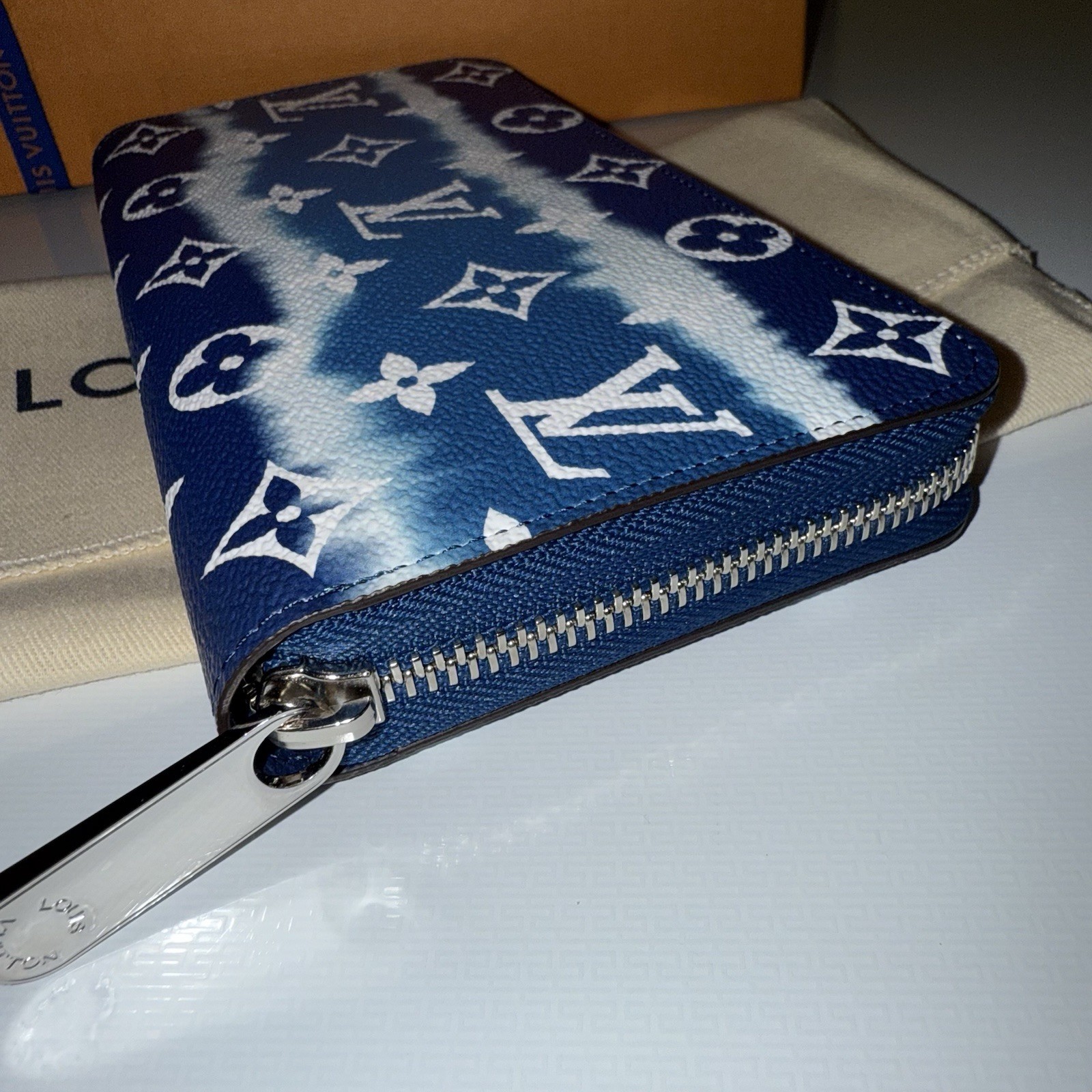 The Louis Vuitton Zippy Wallet Escale Blue M68841 is a stylish designer wallet designed for women. The wallet features a zip-around closure and is adorned with the iconic Louis Vuitton monogram pattern in blue. With multiple credit card slots and a secure zipper, this wallet is both practical and fashionable for everyday use. Made by the luxury brand Louis Vuitton, this wallet exudes sophistication and elegance with its designer details and sleek design.