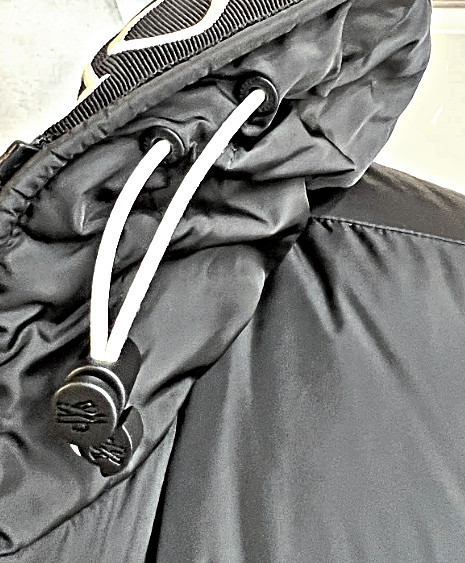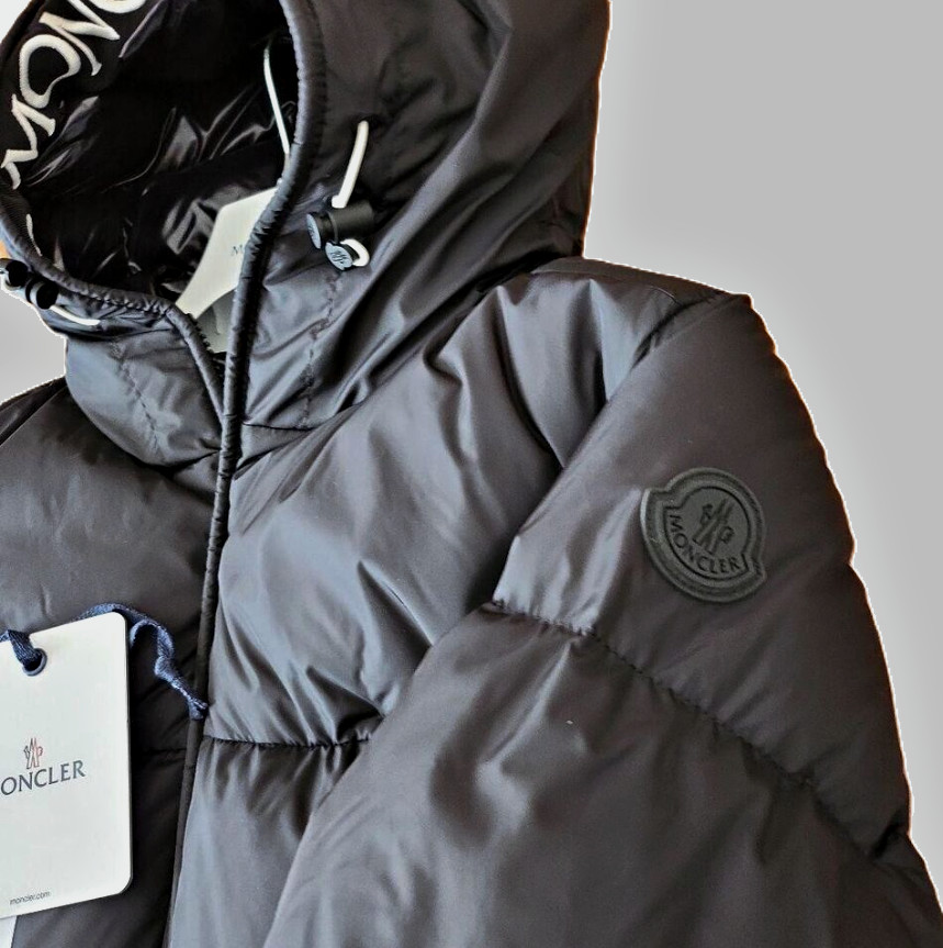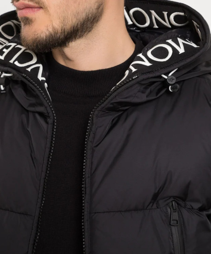 This puffer is finished with logo grosgrain inside the hood, extra-long zip pockets and