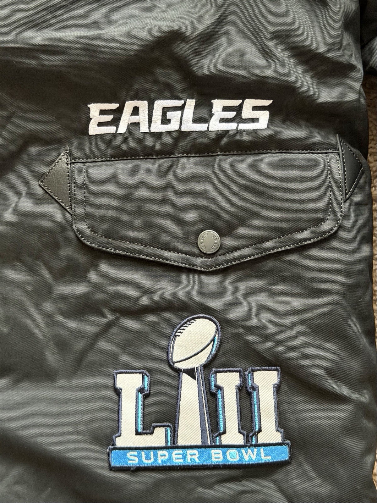 The New Era x Alpha Industries Philadelphia Eagles Parka is a stylish and functional jacket for men. Made from 100% nylon, this reversible parka features the iconic Eagles theme, making it a perfect choice for sports enthusiasts and fans of the team. The classic black color and large size ensure a versatile and comfortable fit for any outdoor activities or casual wear. With the high-quality brand collaboration and durable design, this parka is a must-have addition to any wardrobe.
