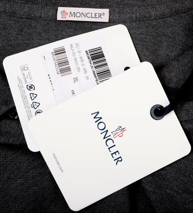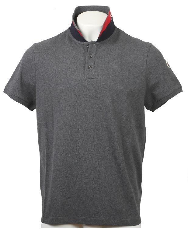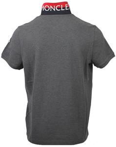 NEW WITH TAGS MONCLER GRAY COTTON SIGNATURE COLLAR LOGO POLO SHIRT. 100% AUTHENTICITY GUARANTEED. 100% AUTHENTICITY GUARANTEED. LUXURIOUS QUALITY SUPER SOFT POLO SHIRT IN GRAY COLOR, RED BLUE UNDERCOLOR WITH MONCLER LETTERING LOGO EMBROIDERY. FELT LOGO EMBROIDERY ON THE SLEEVE. 100% COTTON. SIZE 2XL.