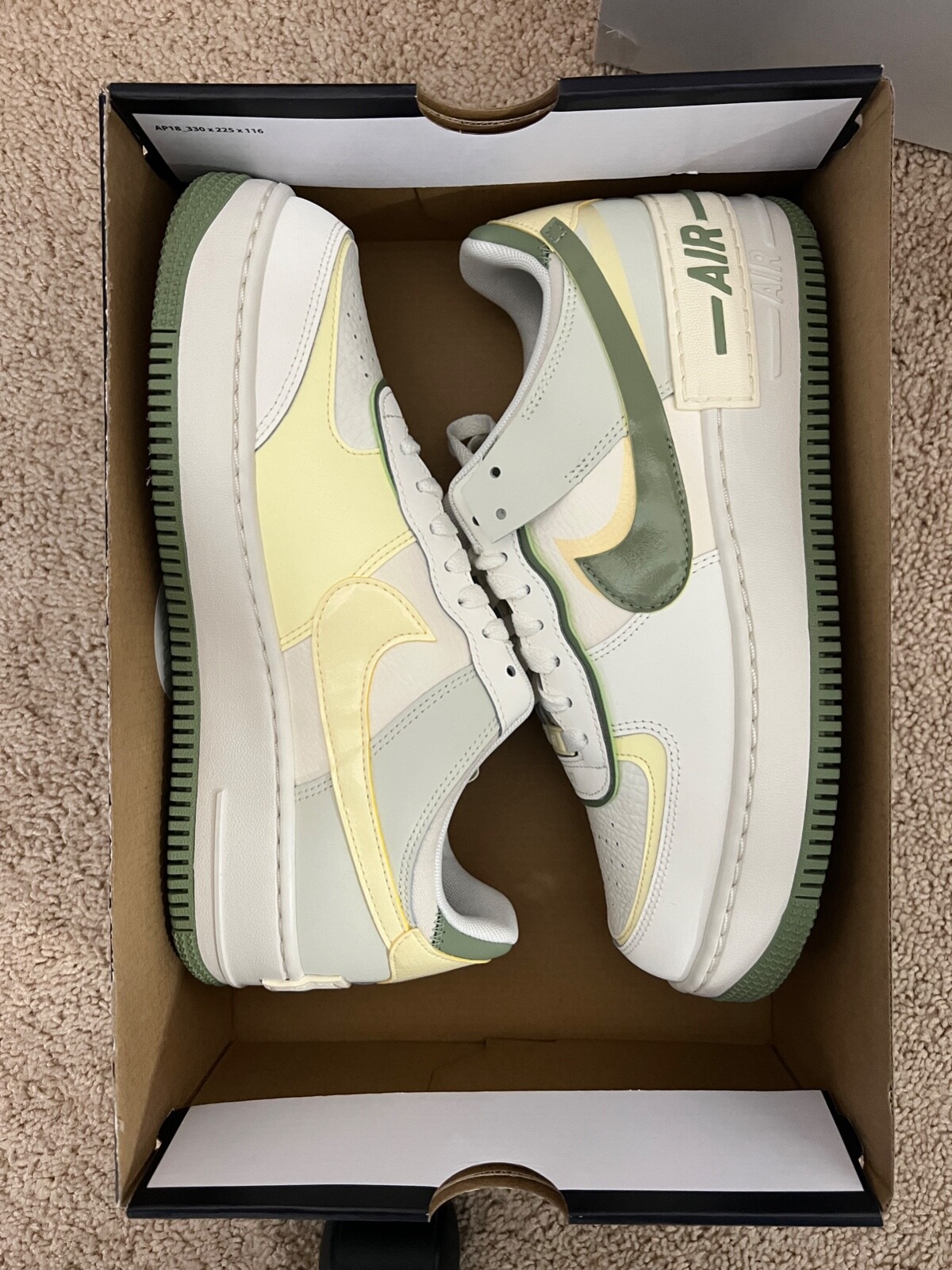 Nike Air Force 1 Shadow Womens Size 10 Sail Pale Ivory Oil Green FN6335-101