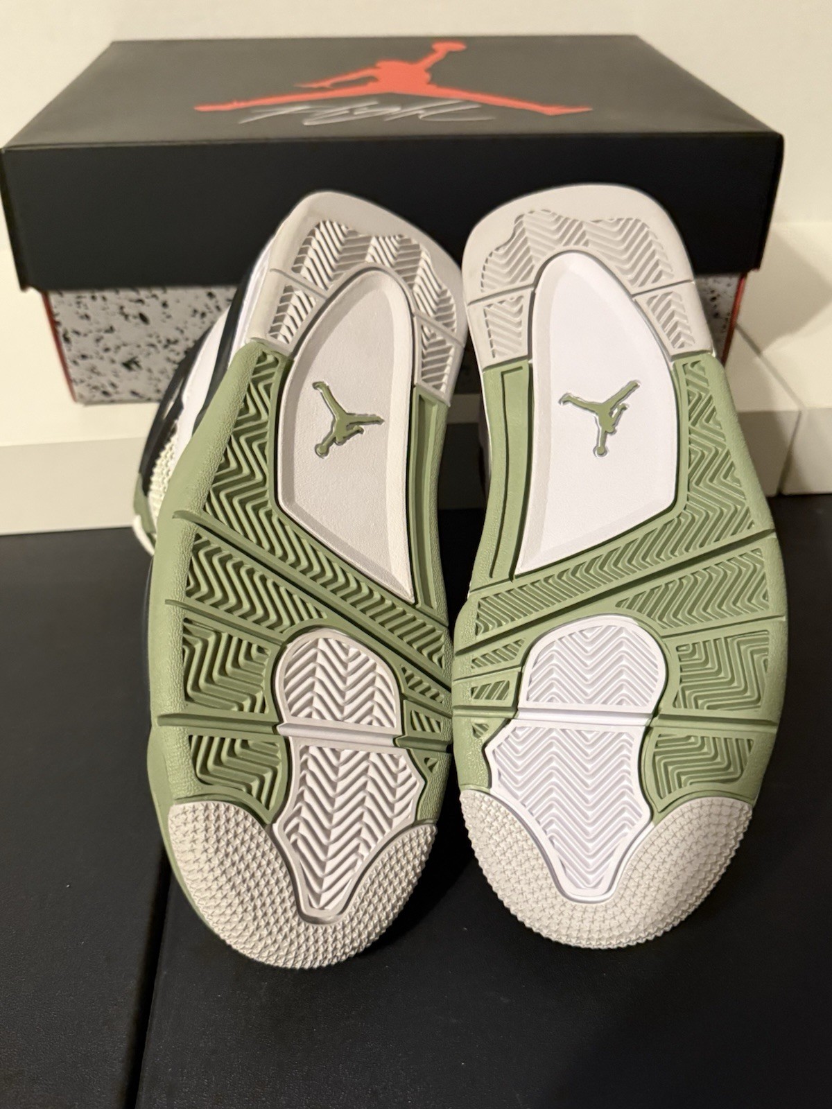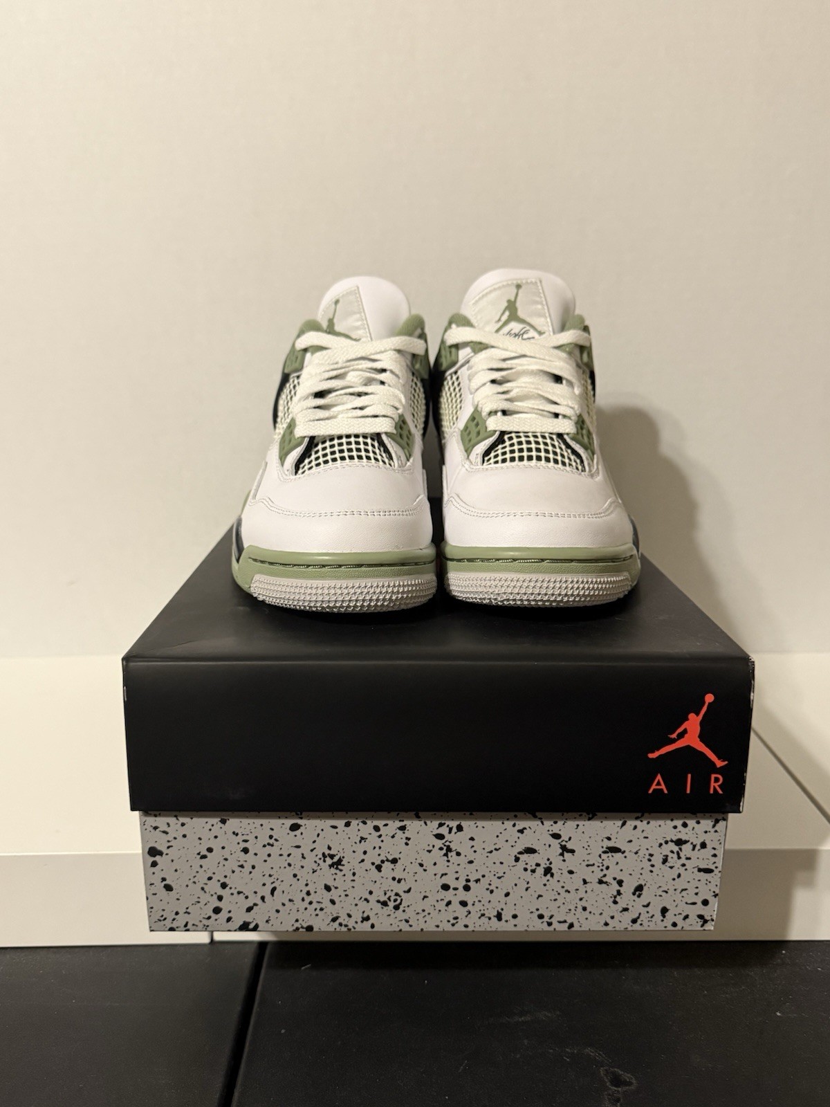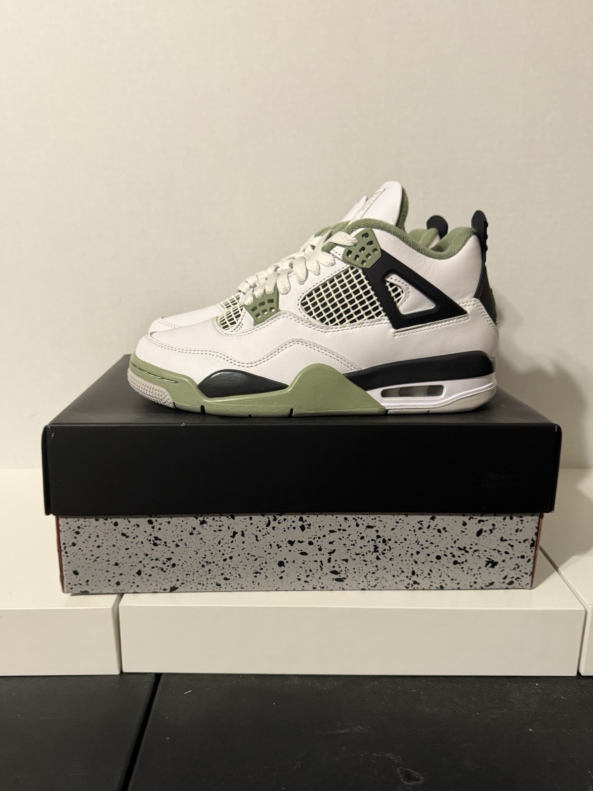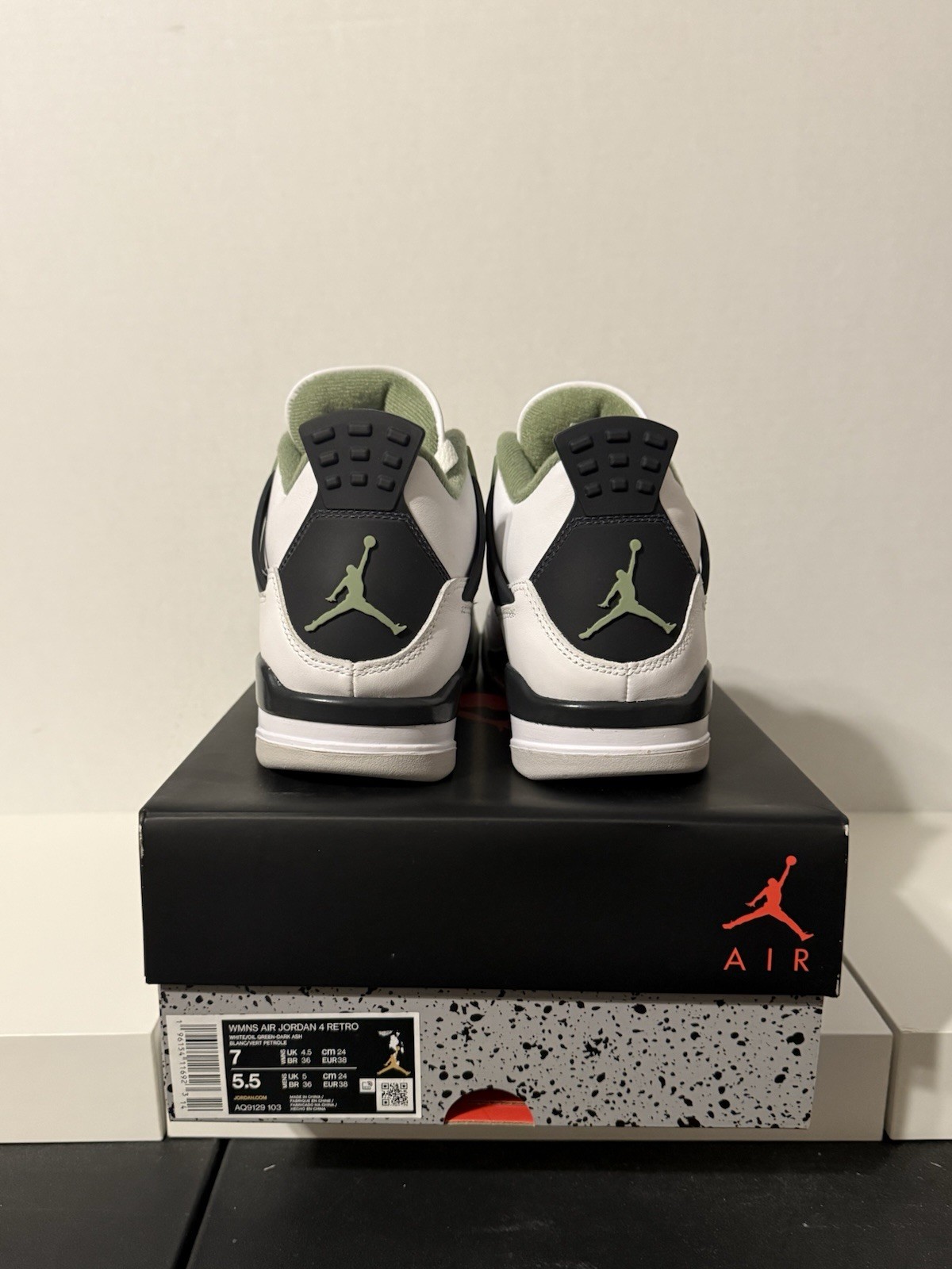 NIKE Air Jordan 4 Retro White Seafoam Oil Green Size 7W 5.5M AQ9129-103 Rare NIB
