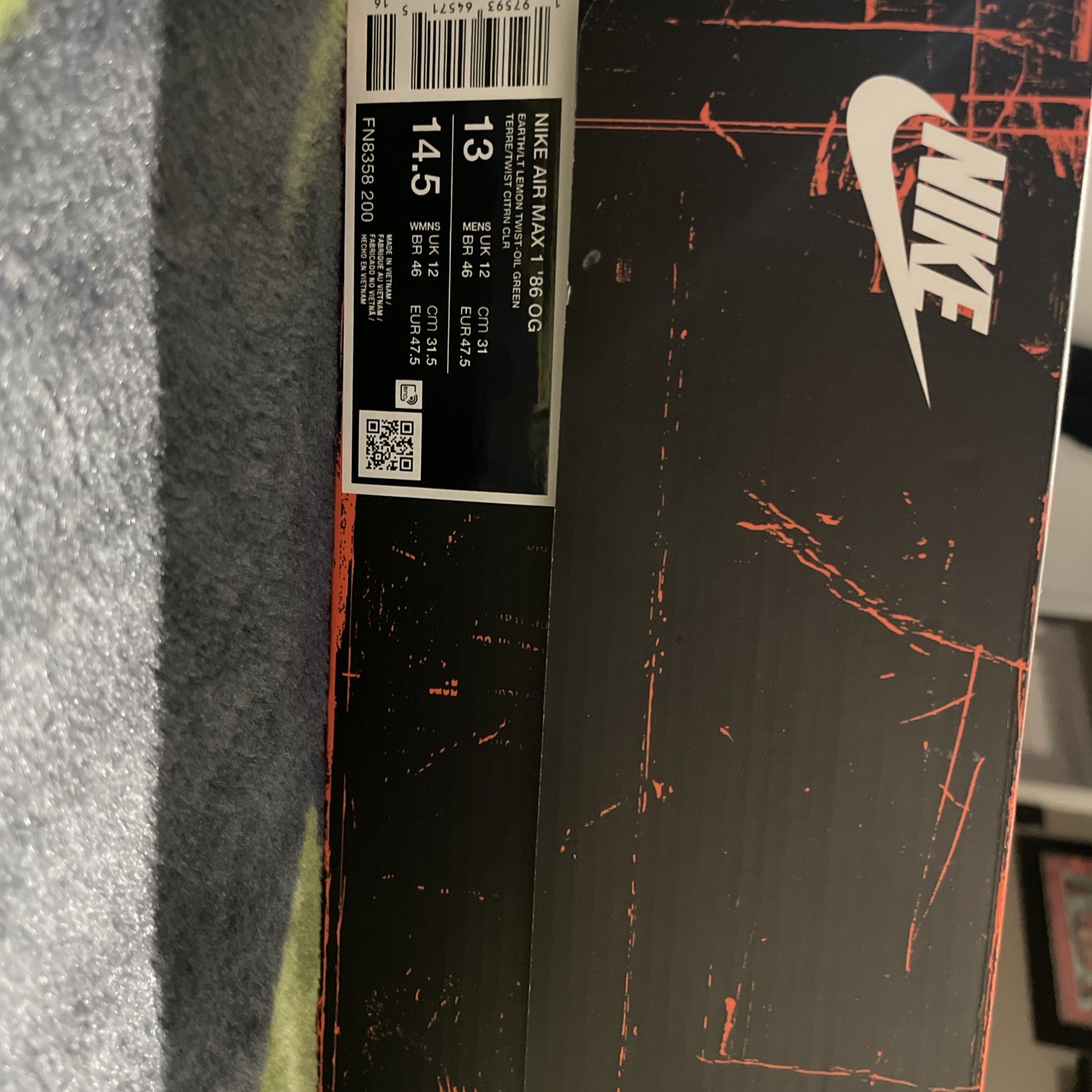 The Nike Air Max 1 '86 OG Men's Size 13 Shoes in Camo/Earth Oil Green (Style Code: FN8358-200) are a stylish and athletic choice for men looking to make a statement with their footwear. Featuring a unique Earth/Light Lemon Twist/Oil Green color scheme, these sneakers are part of the Nike Air Max product line, known for their comfort and durability. The canvas upper material and Big Bubble - Camo nickname add a trendy touch to this classic silhouette, perfect for any sneaker enthusiast looking to add a touch of camouflage to their footwear collection.
