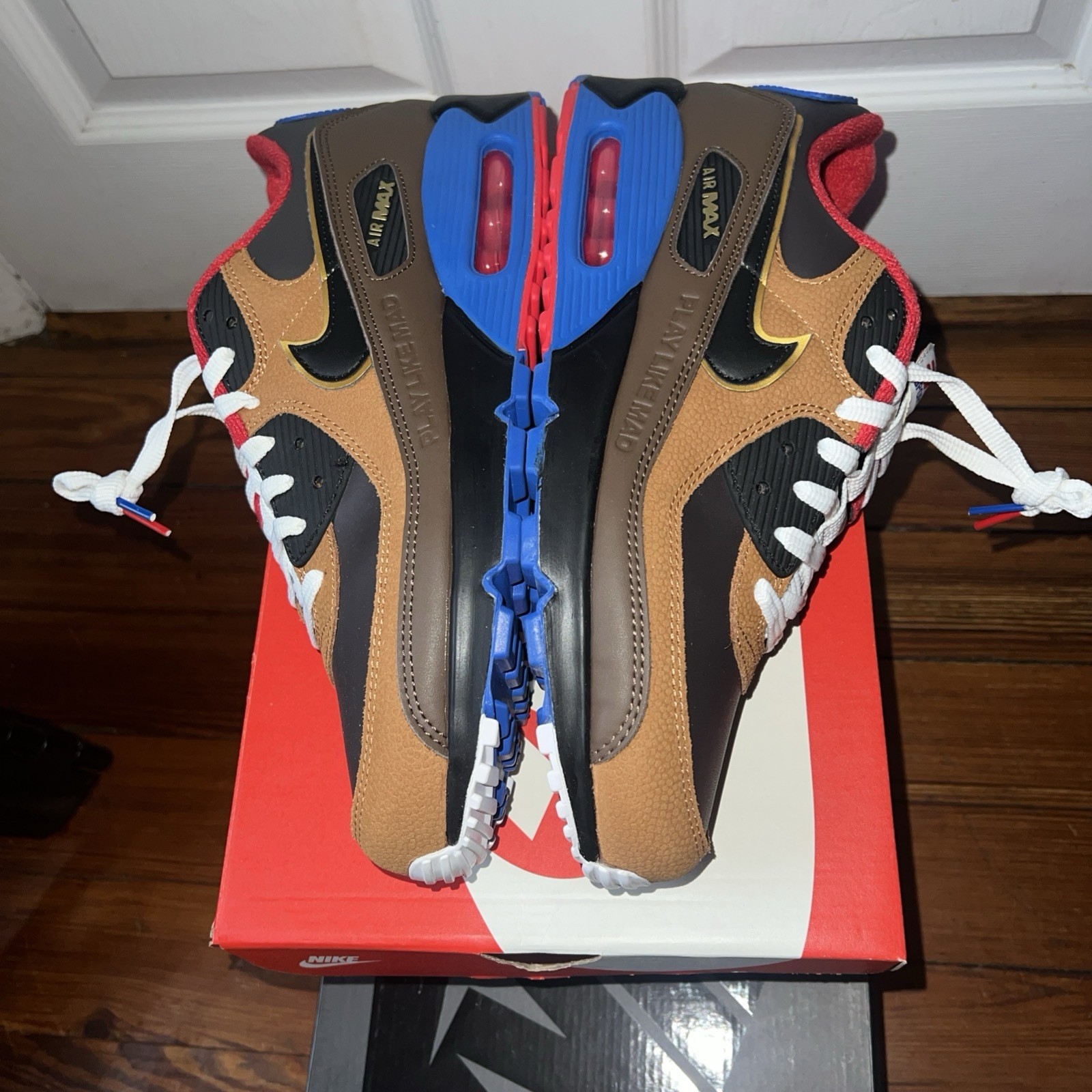 Up for sale we have a brand new pair of Nike Air Max 90 EA Sports "Play Like Mad" Men’s Size 11 Style #FN1870 200 NIB. These have never been worn nor tried on. Men’s size 11 new in the box.