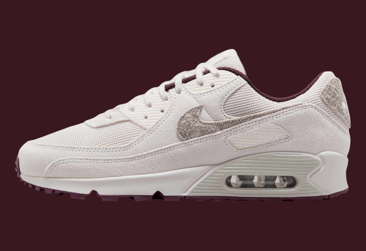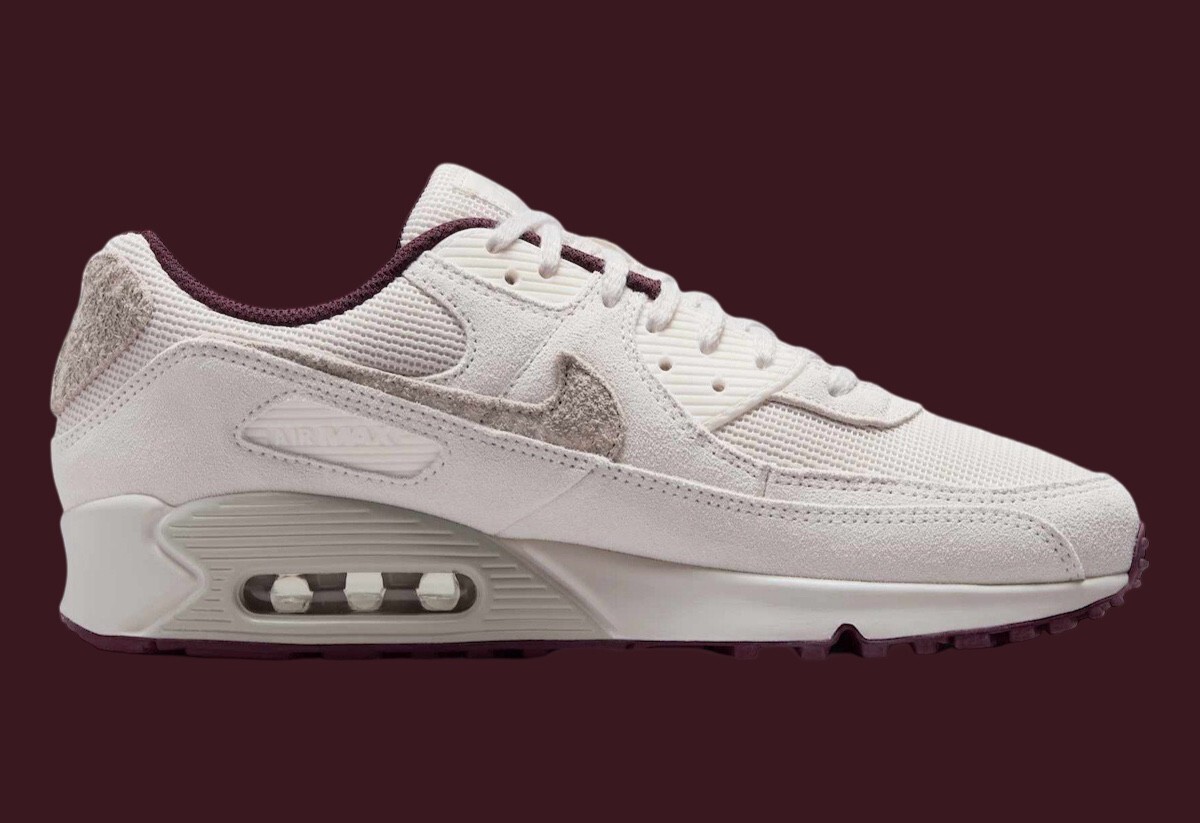Product Title: Nike Air Max 90 PRM Men's White Burgundy Crush Sports Sneaker HQ1712-001