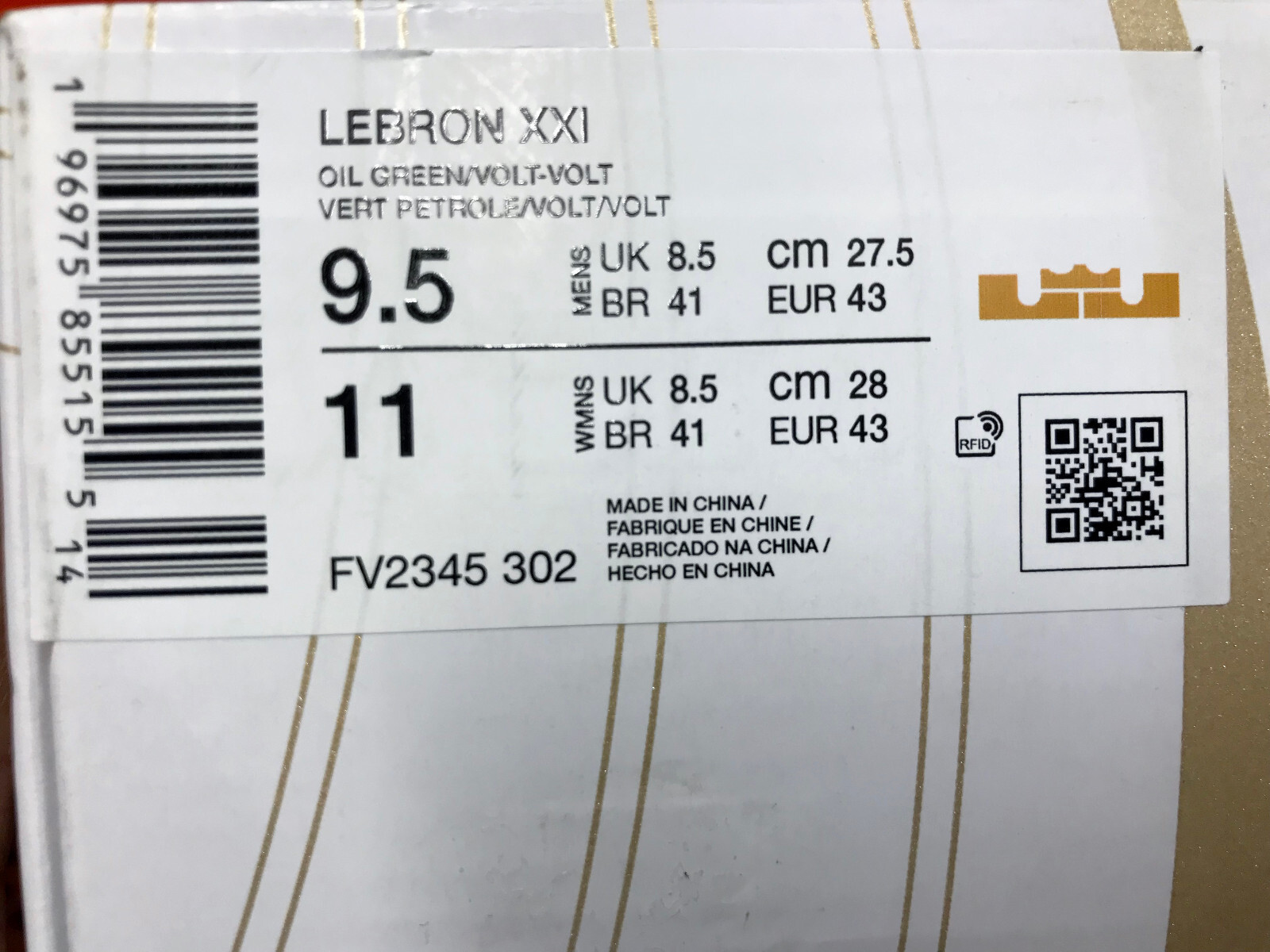 NIKE LEBRON XXI ALGAE BASKETBALL OIL GREEN/VOLT SIZE MEN'S 9.5 [FV2345-302]