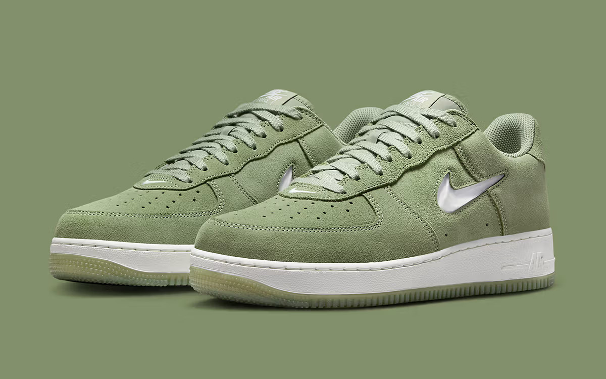 Step into iconic style with the Nike Air Force 1 '07 Low Jewel "Color of the Month" in the striking Oil Green colorway. A modern take on a classic, this limited-edition release features the premium materials and crisp silhouette that made the Air Force 1 legendary, now elevated with a translucent Jewel Swoosh and luxe suede overlays.