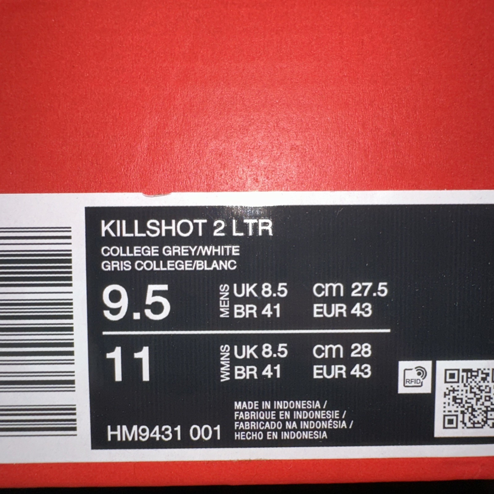 Nike Men's Size 9.5 Killshot 2 LTR (HM9431 001) Sneaker Trainer Gray Sports