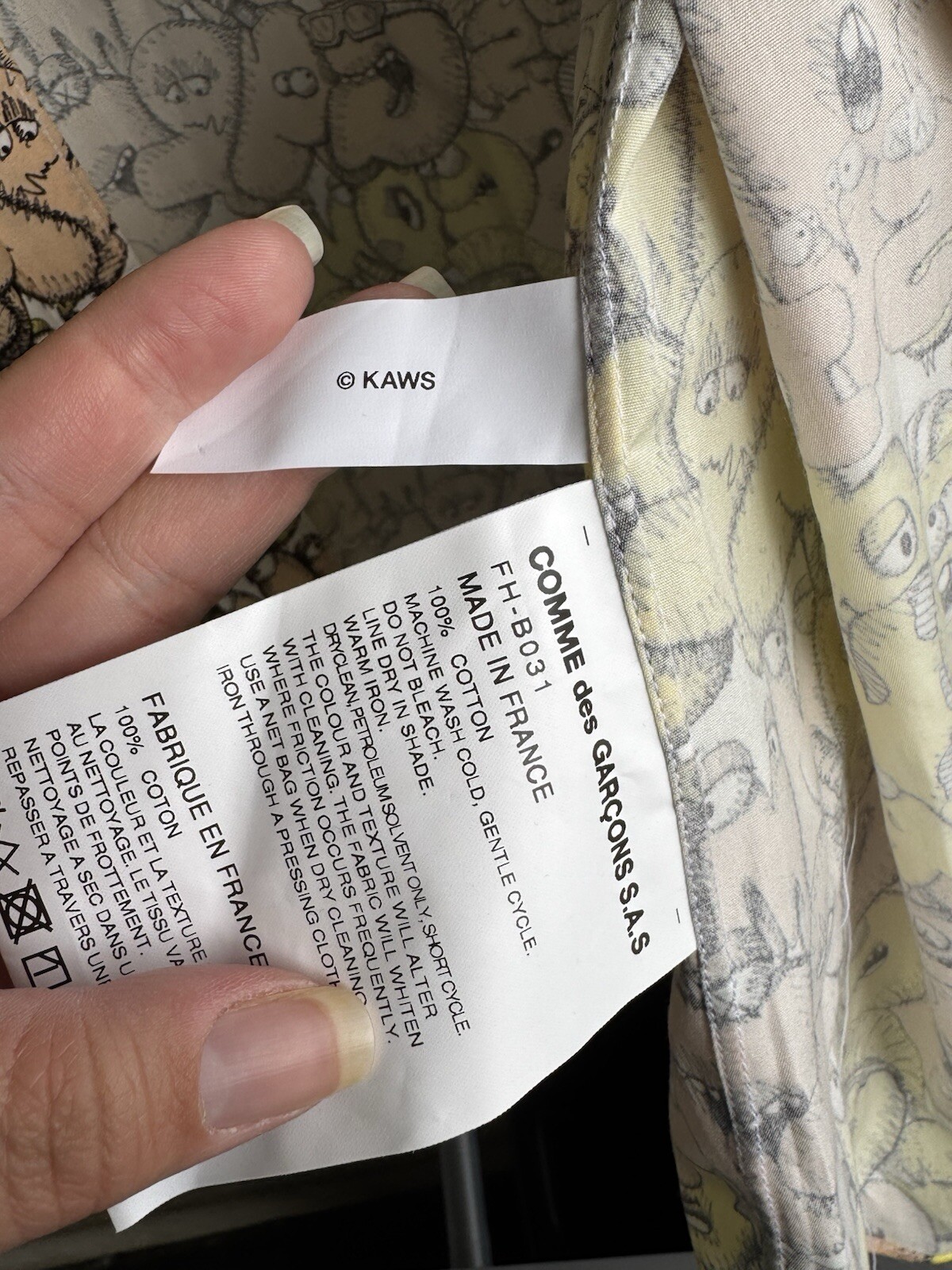 folded the letters into CDG and Comme des Garçons shirt combinations. Things were completely covered with CDG letters in the form of KAWS characters