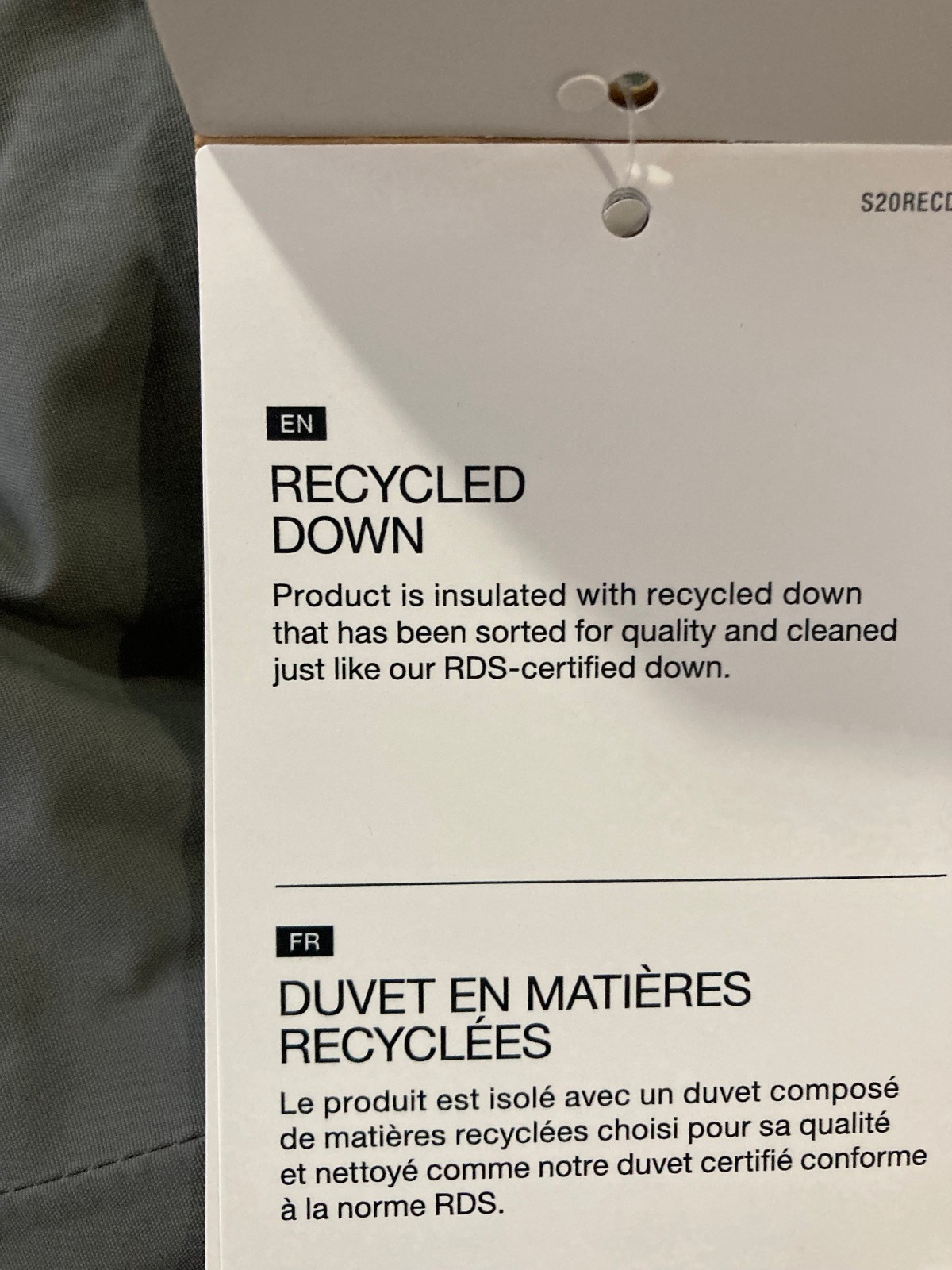 • Insulation: Down; certified to the Responsible Down Standard (RDS) by Control Union