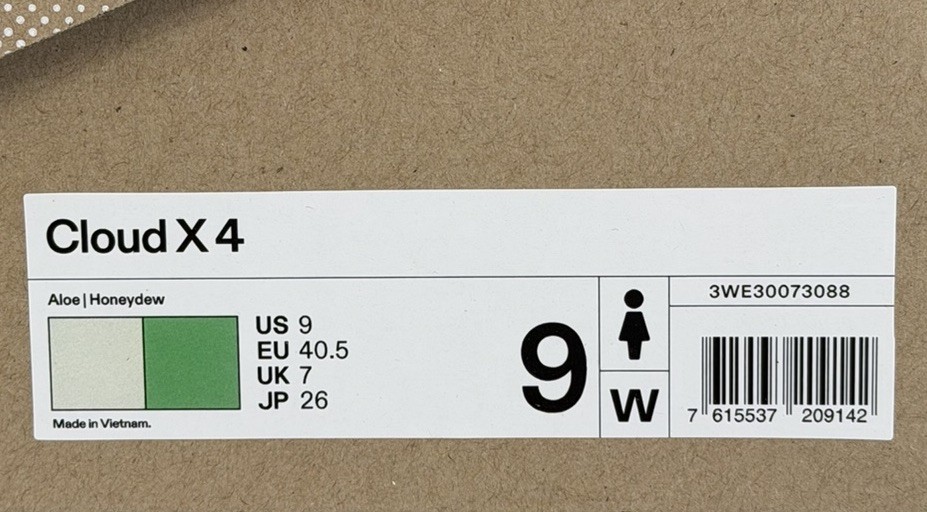 On Cloud X 4 - Aloe/ Honeydew 3WE30073088 Running Shoes Women’s Size 9 - NEW!