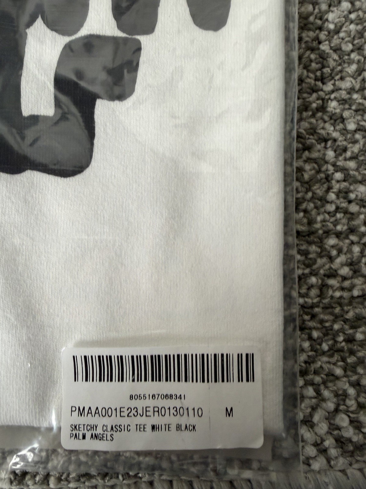 The Palm Angels Sketchy Tee T-Shirt is a rare and sought-after piece featuring a white design with an eye motif. This authentic, brand new item is sized medium and crafted for men who appreciate unique and eye-catching clothing. The shirt exudes a trendy and edgy aesthetic perfect for those looking to make a statement with their fashion choices.