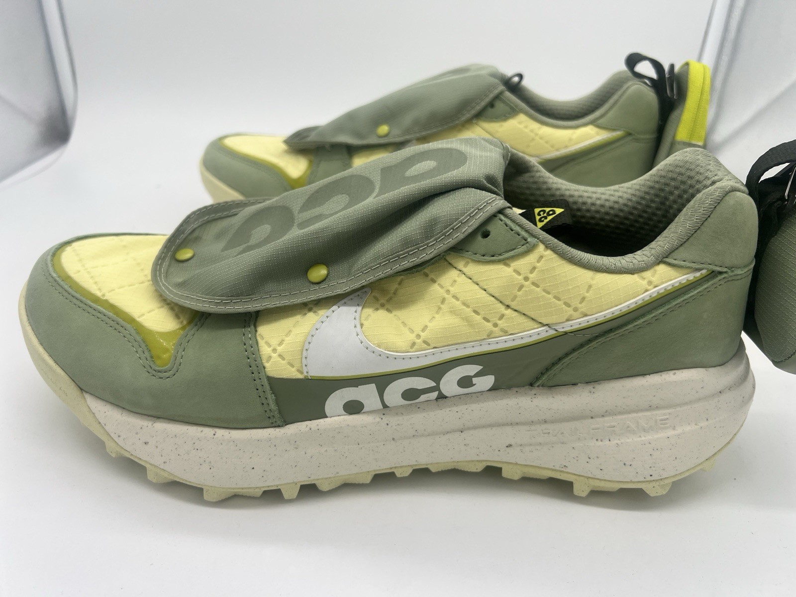 The Nike Future Movement x ACG Lowcate Oil Green sneakers in size 11 are a stylish and athletic pair of shoes designed for men. Released in 2023, these sneakers feature a suede upper material in a vibrant green color, perfect for adding a pop of color to any outfit. With the iconic Nike ACG product line and the innovative Future Movement technology, these sneakers offer both style and performance for any athletic activity. Whether hitting the gym or simply running errands, these sneakers are sure to make a statement.