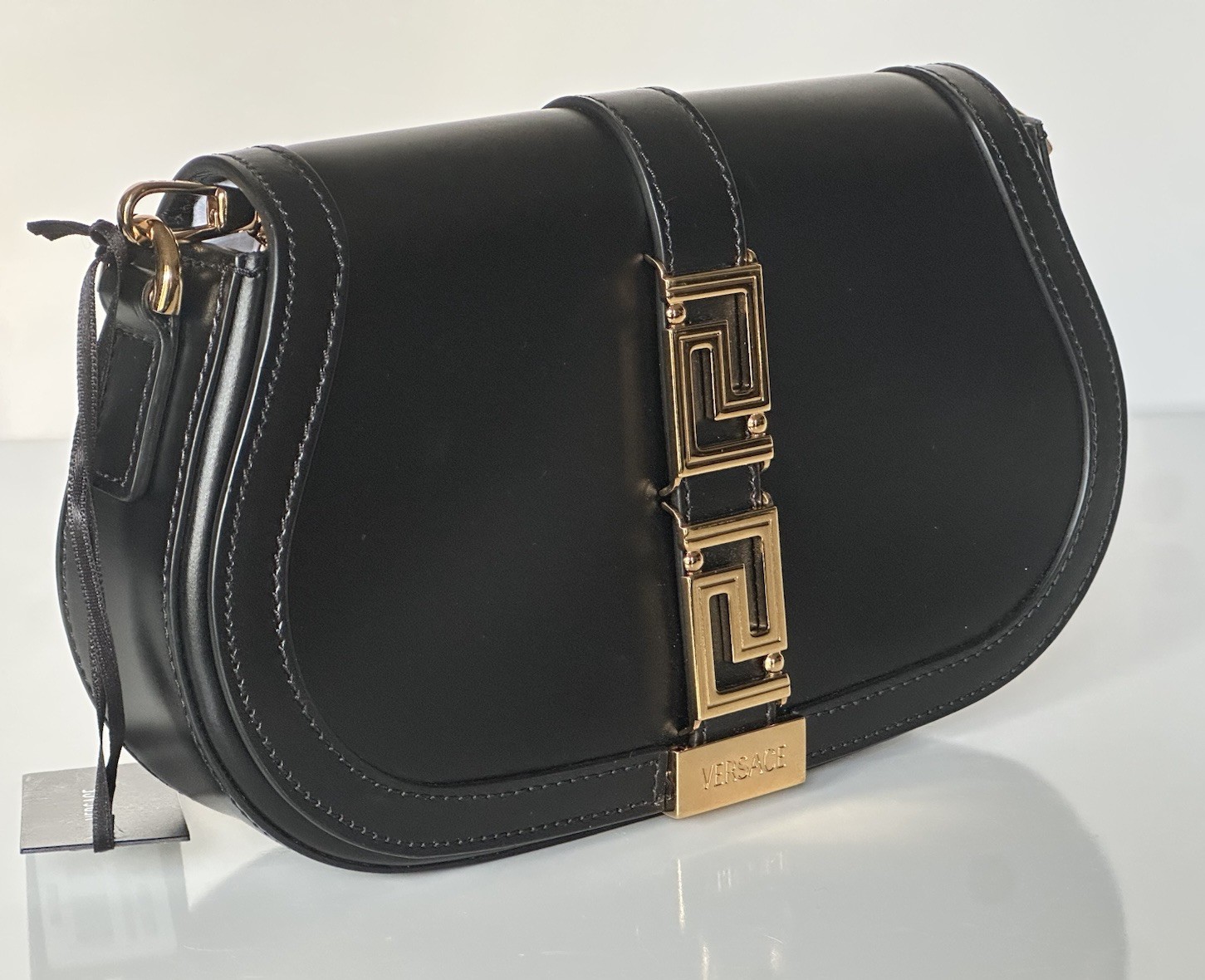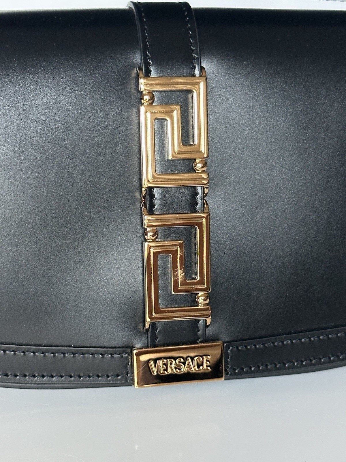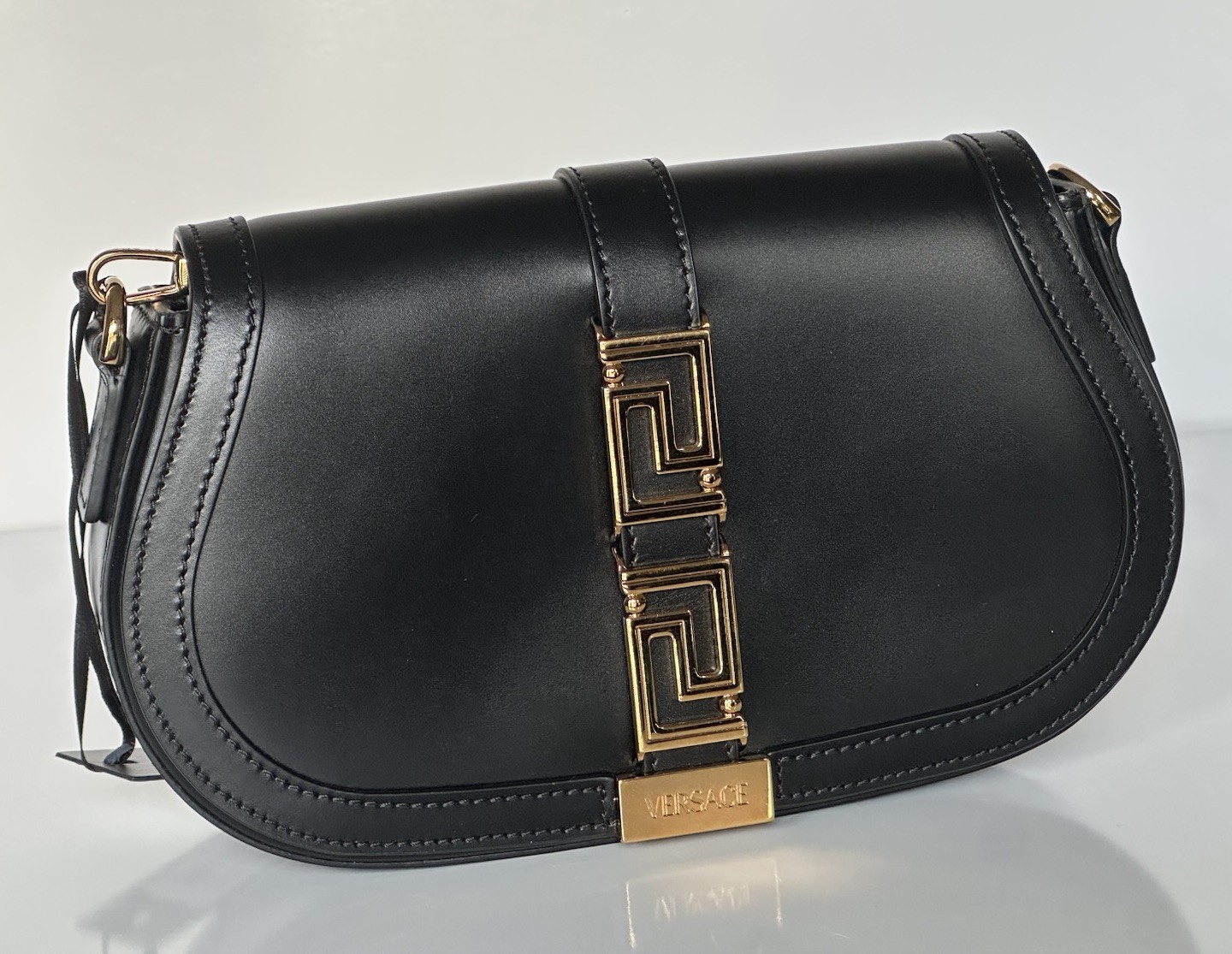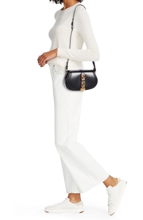 Durable and bold, this iconic shoulder bag features an inside pocket, appealing goldtone accents carrying signature La Greca motifs and is crafted from superior leather.