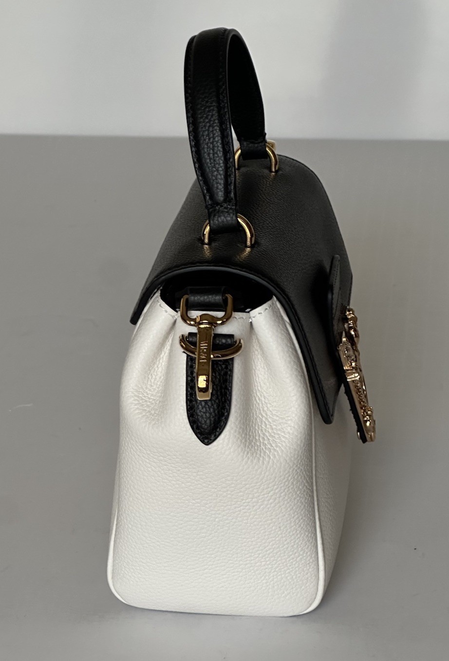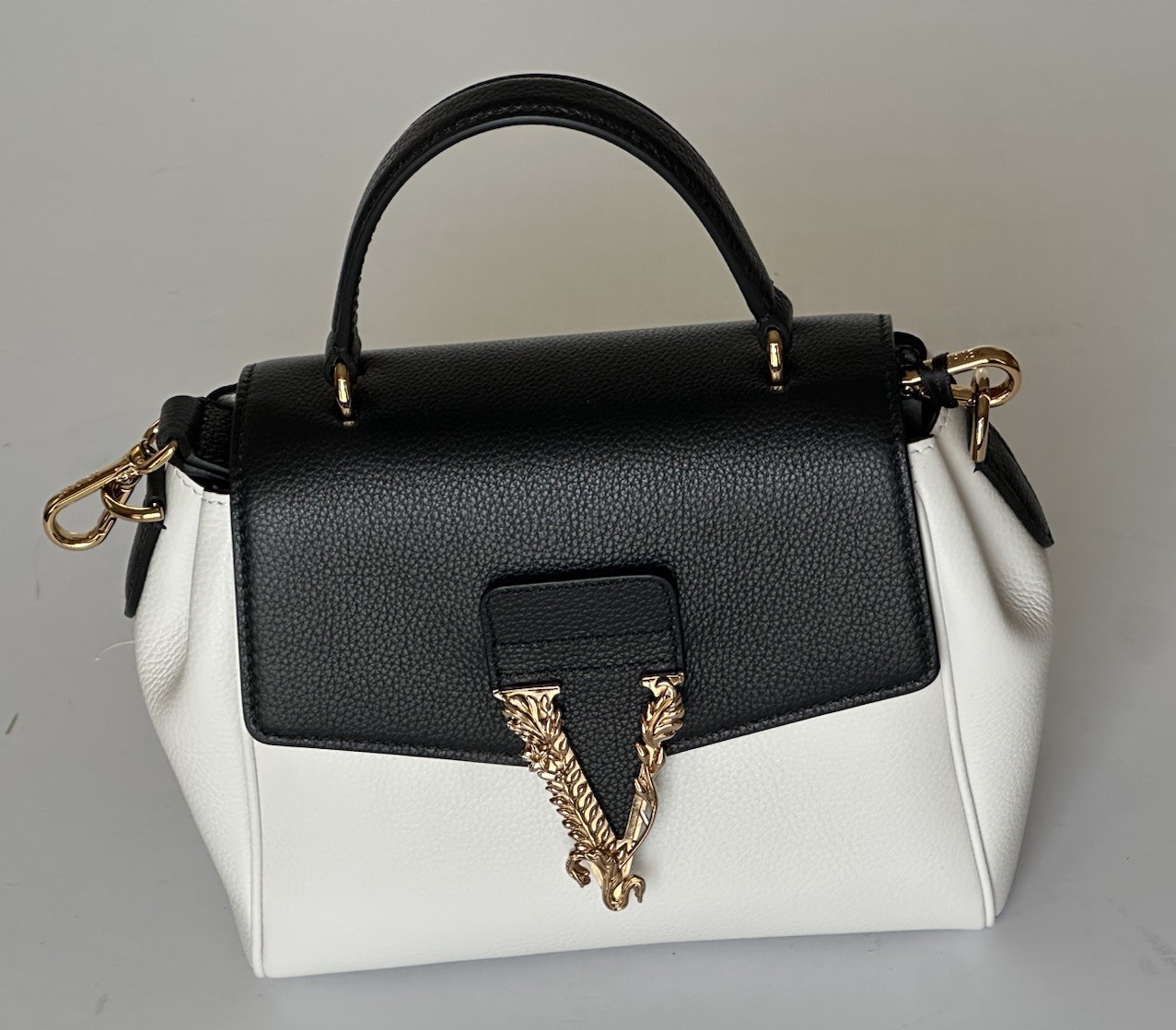 Versace Virtus Grainy Calf Small Black/White Top Handle Bag 1015556 IT NWT $1675
