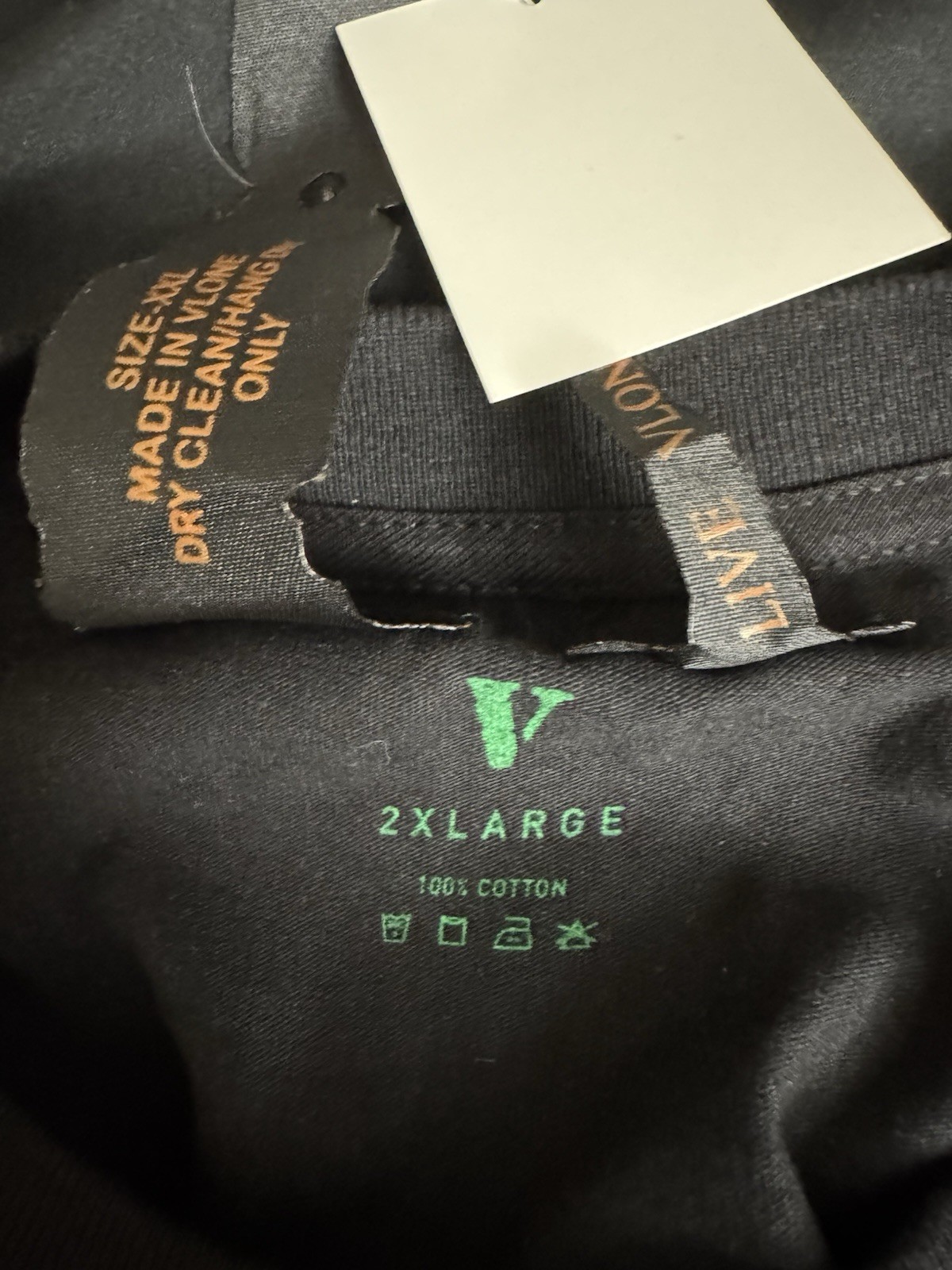 The Vlone Men's T-Shirt in size XXL is a rare find, perfect for any urban streetwear enthusiast. Made from cotton with a solid black color, this short sleeve tee features a crew neckline and a logo accent. Machine washable and manufactured in the United States, this regular fit shirt is ideal for the summer, fall, or spring seasons. Representing the VLONE brand, this Gildan 5000 product is a stylish addition to any man's wardrobe.