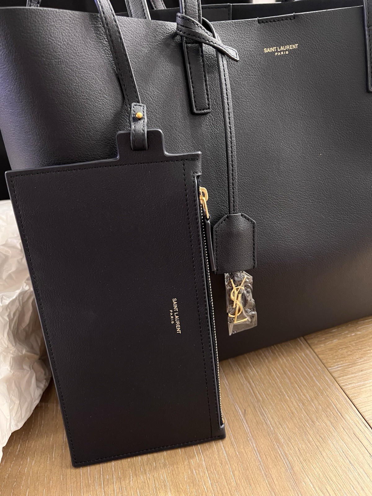 Brand New! Yves Saint Laurent East/West Tote Bag, Unused! YSL blue Tote, with duster, in box! Would be a Beautiful Christmas gift!! LARGE, LIGHT, SUPPLE EAST/WEST TOTE BAG, FEATURING CASSANDRE CHARM AND DETACHABLE INTERIOR ZIPPED PURSE. LEATHER LINING GOLD-TONED HARDWARE MAGNETIC SNAP TAB DETACHABLE ZIPPED PURSE DIMENSIONS: 14.5 X 11 X 5.1 INCHES HANDLE DROP: 9.2 INCHES CALFSKIN LEATHER, POLYURETHANE STYLE ID 600281CSV0J1000 MADE IN ITALY