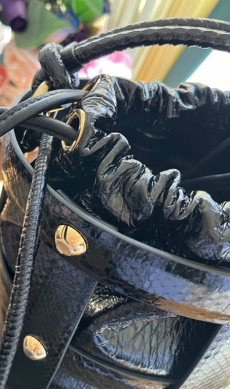 Add a touch of elegance to your outfit with this limited edition Salvatore Ferragamo Cage Bag. Crafted from high-quality black leather, this shoulder bag is perfect for women who want to make a statement. The exterior is adorned with a beautiful reptile design that adds a unique touch to the overall look.