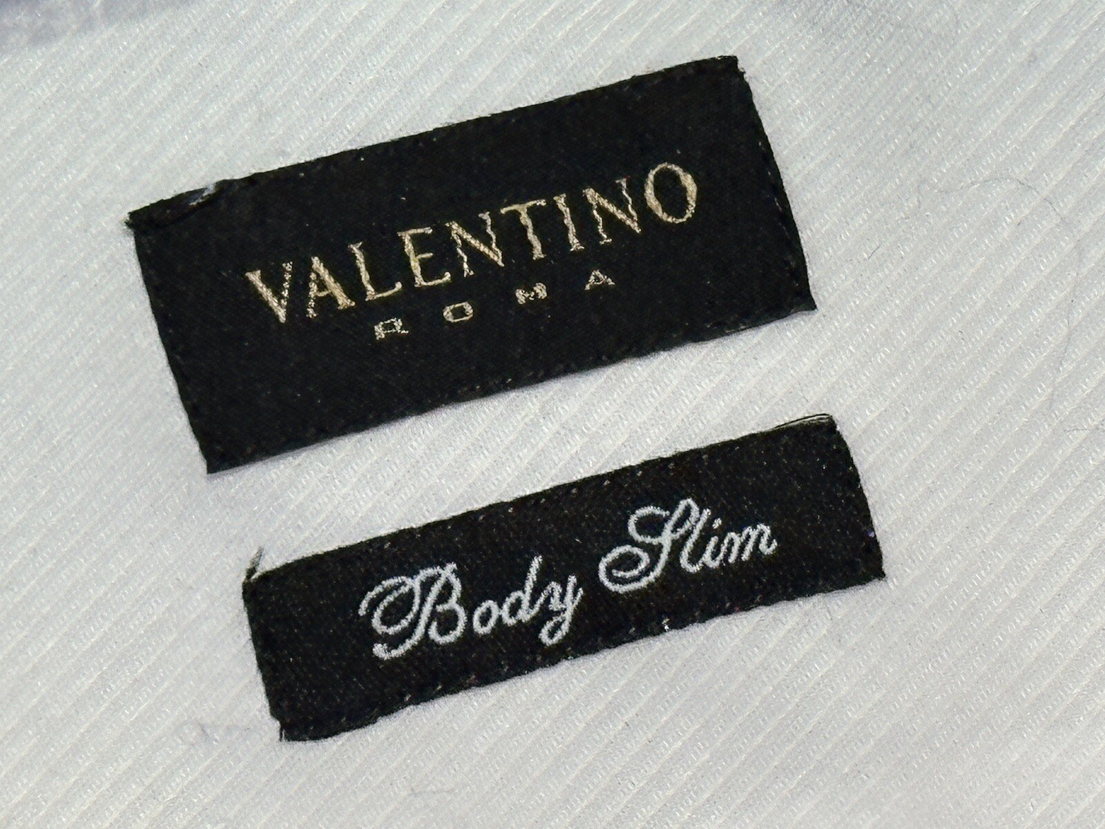 Elevate your wardrobe with this stunning Valentino Roma dress shirt. The crisp white color and tone on tone twill pattern provide a classic and sophisticated look. The slim fit and point collar add a modern touch to this timeless piece. The shirt features a button closure, long sleeves with barrel cuffs, and is made of 100% cotton twill fabric. Perfect for any occasion, this shirt is a must-have for any fashion-conscious man.