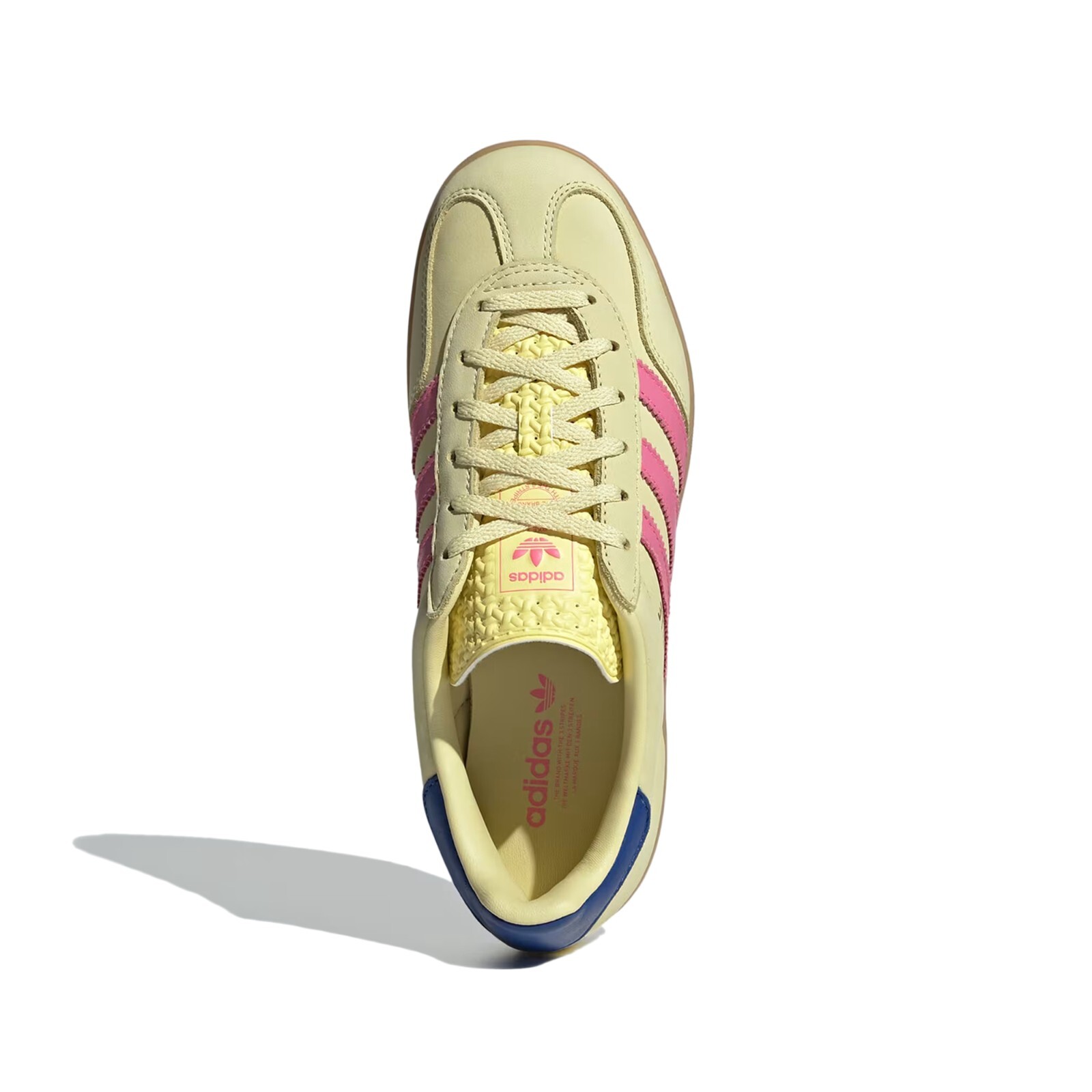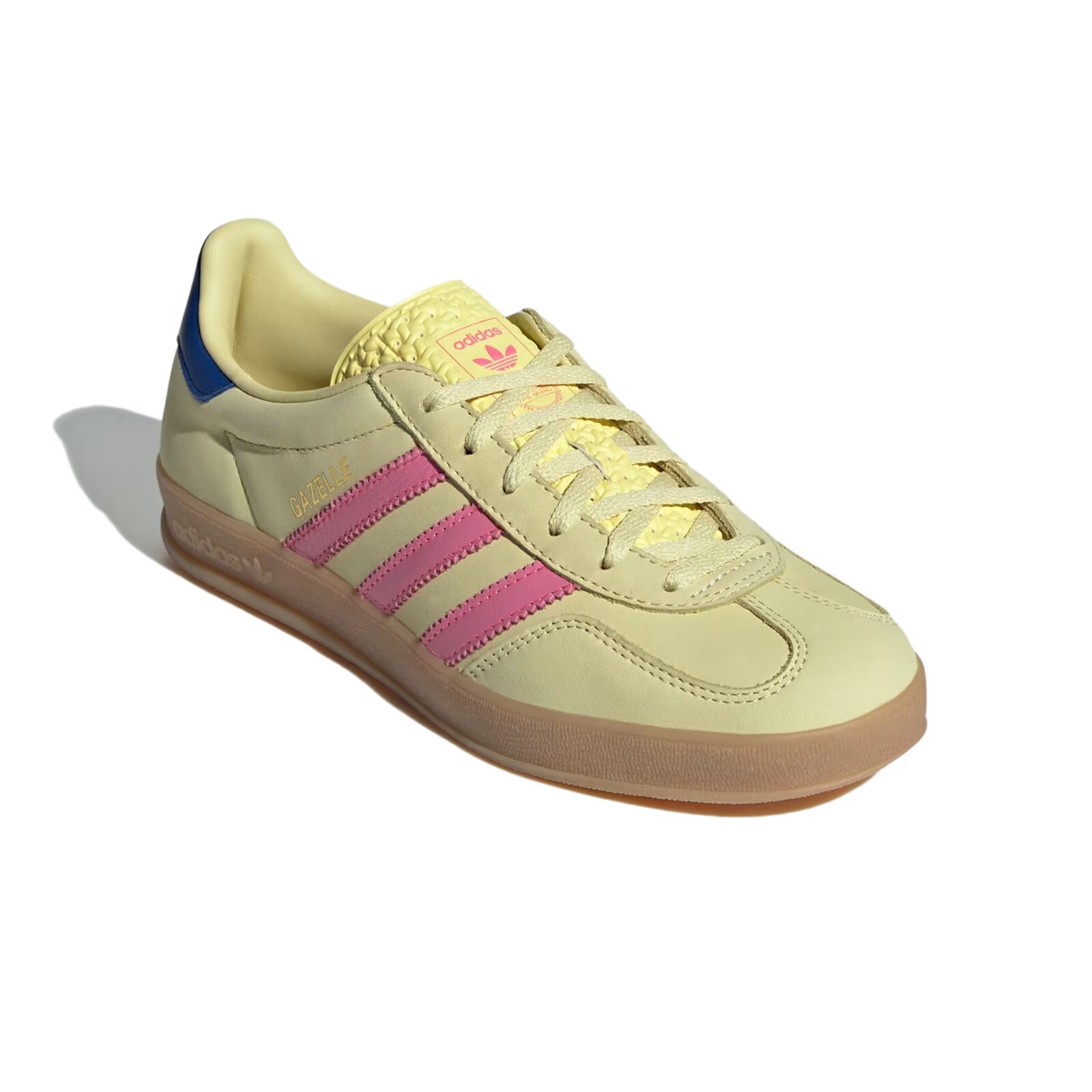Once designed for indoor training, now prized for retro style. With rich roots in adidas history, these Gazelle shoes add nostalgic appeal to every stride. The iconic gum rubber outsole calls back to the original design while a smooth leather upper with a tumbled leather T-toe offers premium appeal. Two-tone 3-Stripes are an unexpected detail that feels playful and fresh.