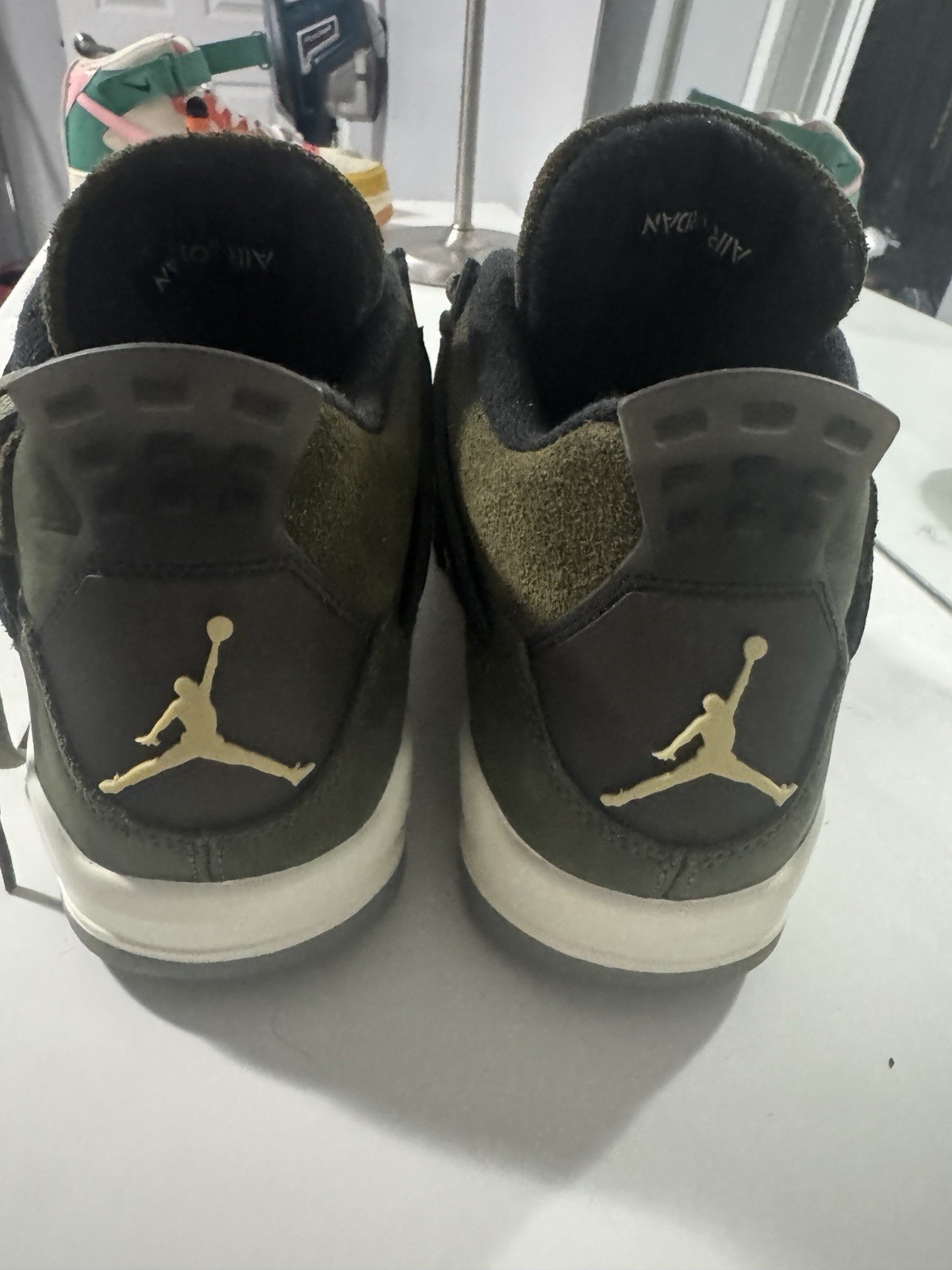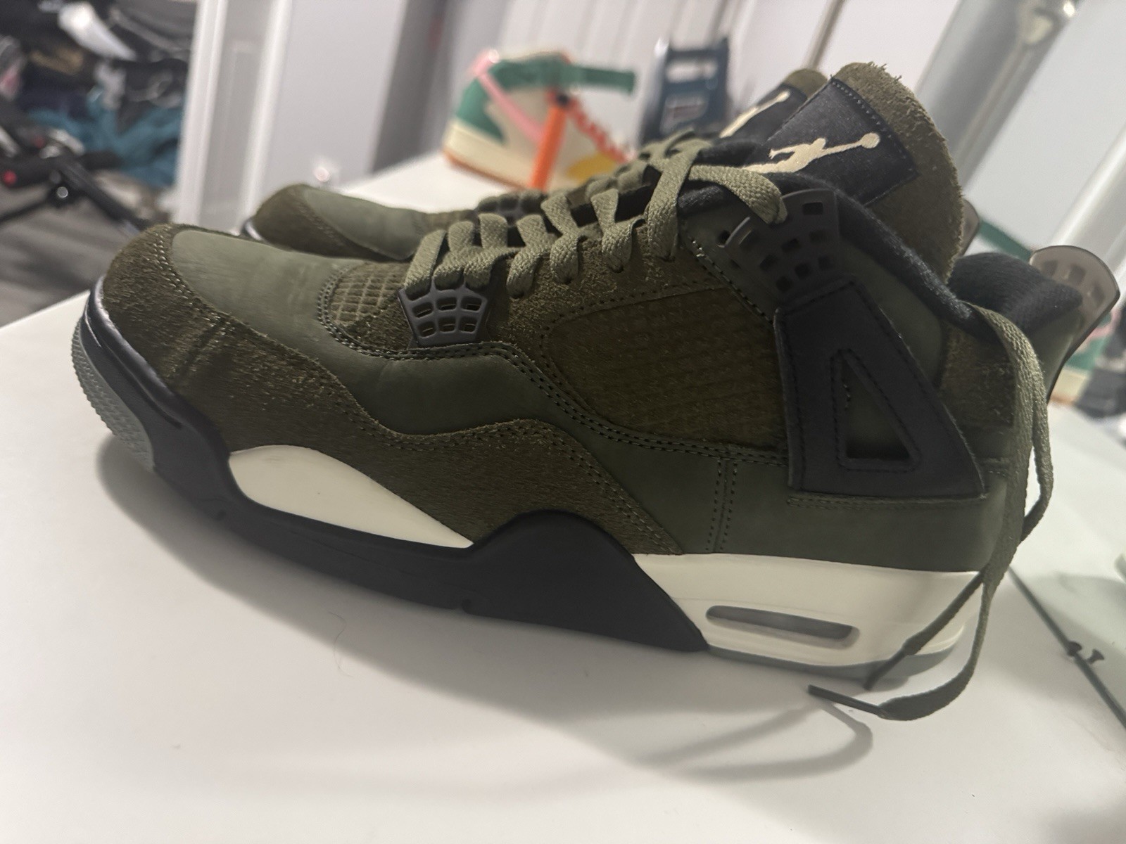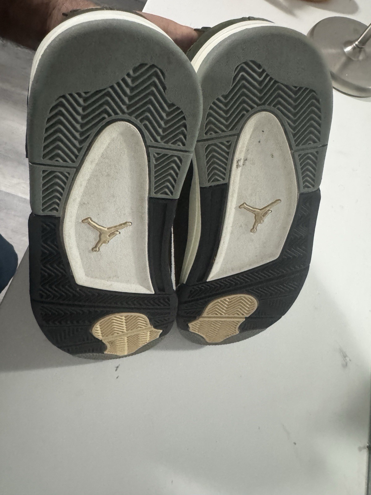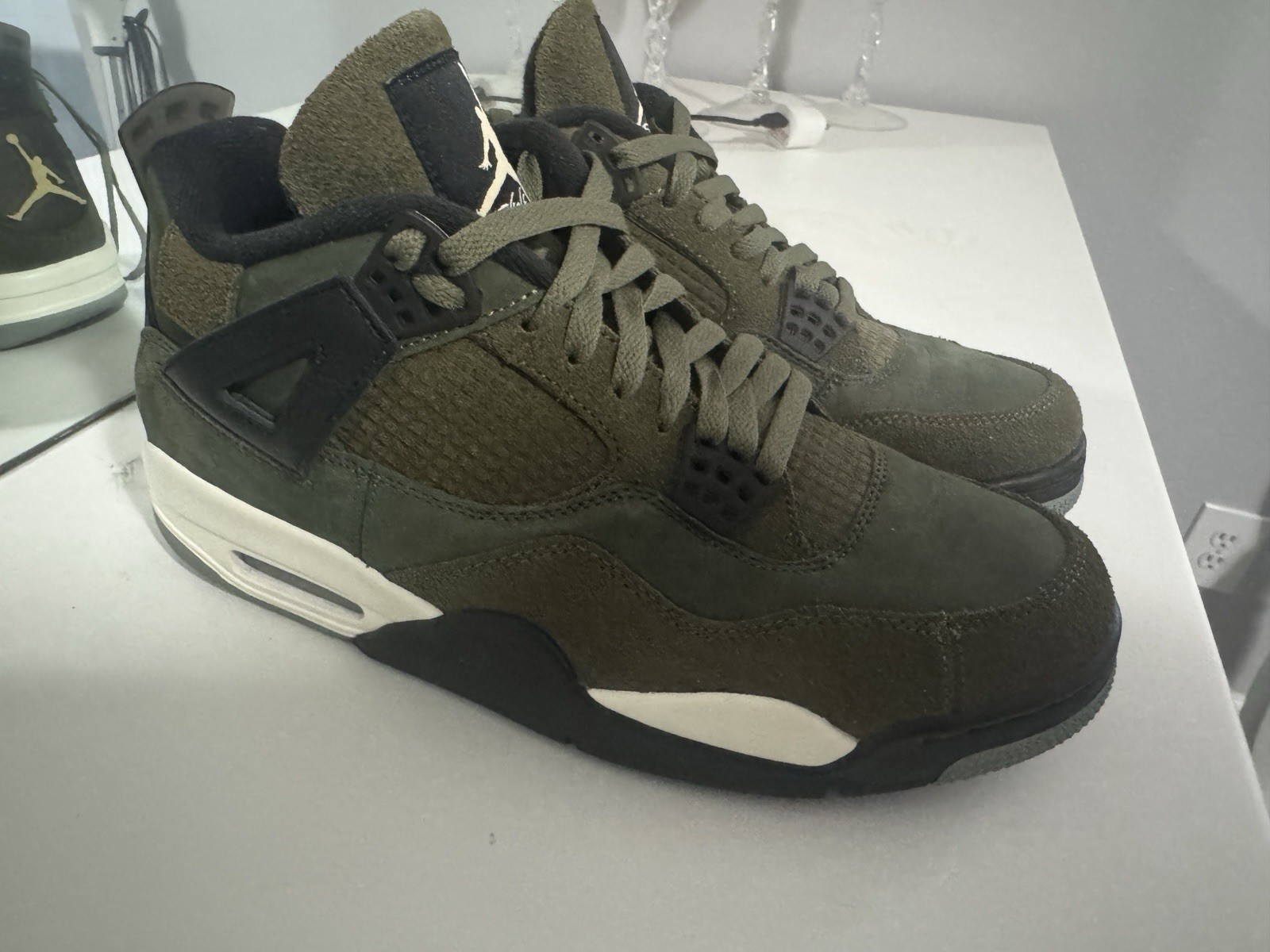 The Air Jordan Flight Court Oil Green Olive Aura is a stylish sneaker designed for men who appreciate both style and functionality. With a low-top design, lace-up closure, and comfortable foam insole, these athletic shoes are perfect for casual wear and activewear occasions. The olive green color and rubber outsole provide a trendy and durable option for cross-training activities during the spring and summer seasons. The Jordan brand ensures quality and performance, making these sneakers a great addition to any athletic shoe collection. I wear this 1 time in-house