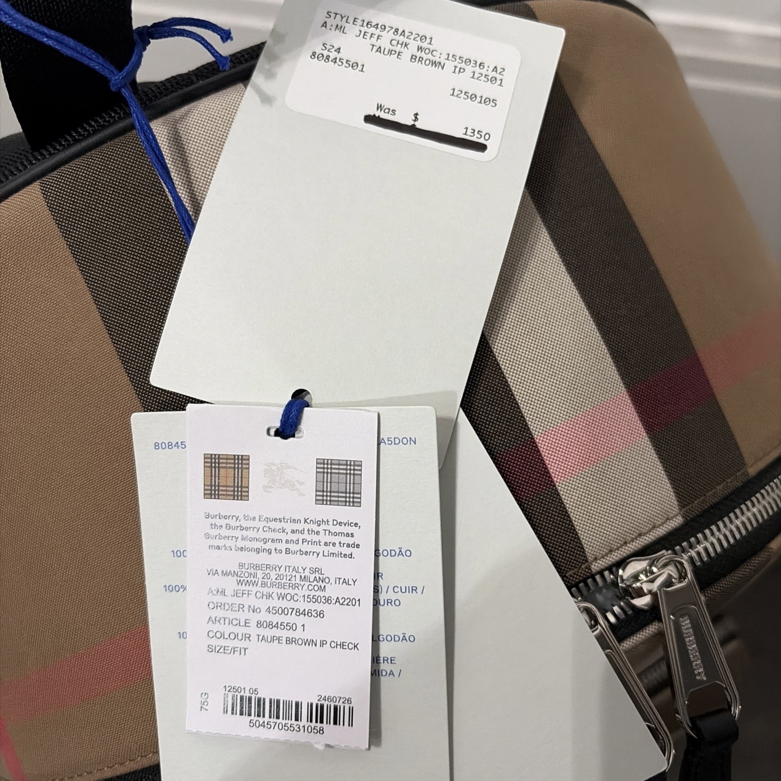 Authentic NEW BURBERRY UNI Brown / Beige JEFF Cotton Check Backpack